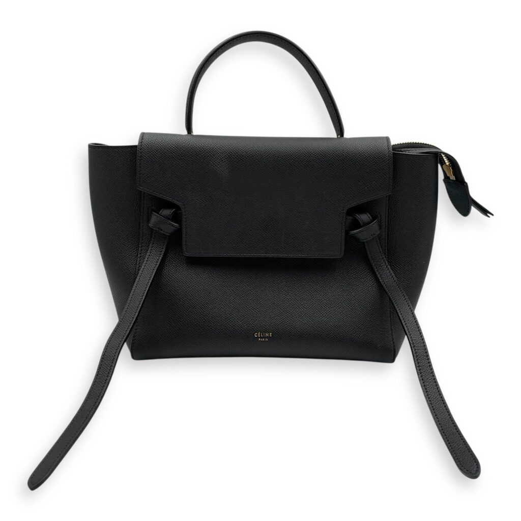 Belt Mini Black Crossbody Bag in Calfskin, Gold hardware