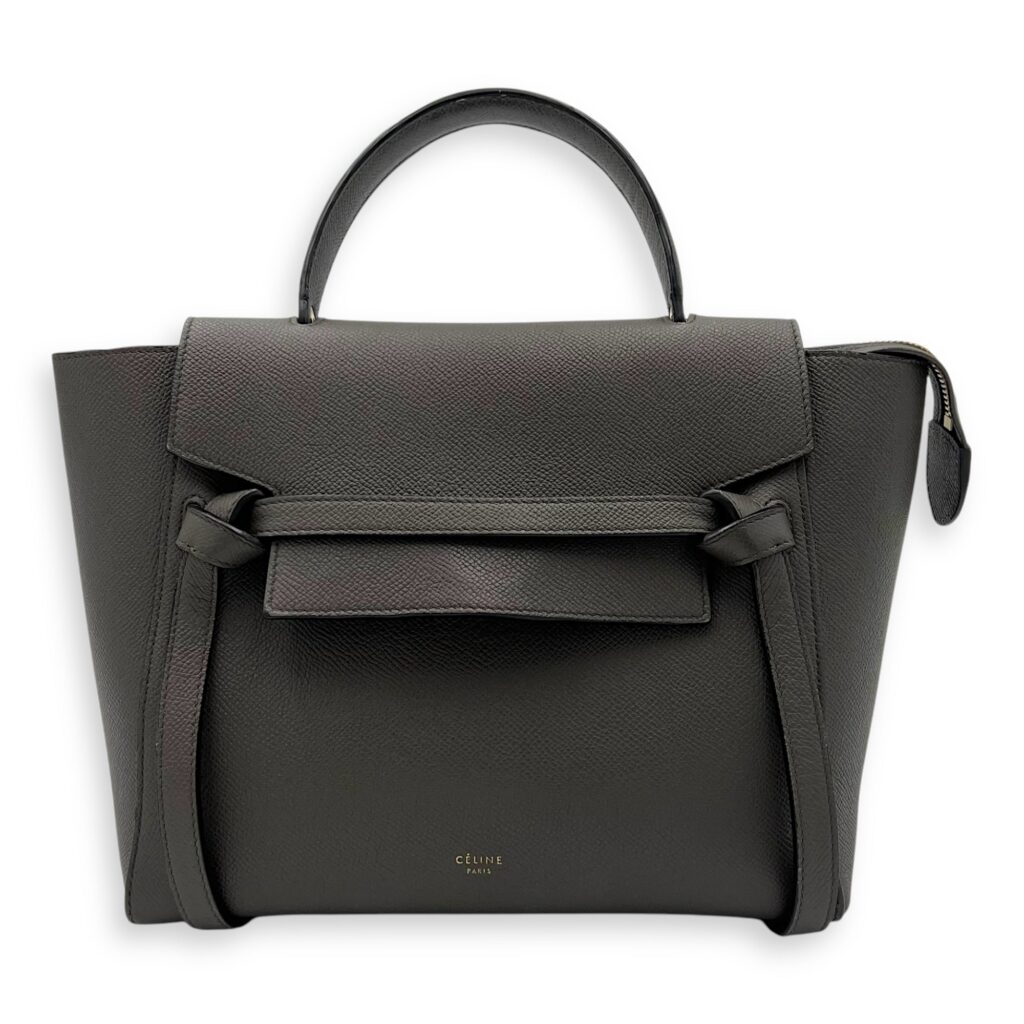 Belt Bag Top Handle Bag Micro Grey in Calfskin, Gold hardware