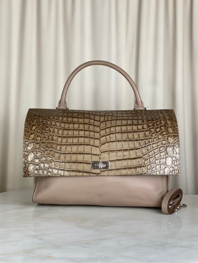 Givenchy Beige Croco Embossed Shark Top Handle Bag