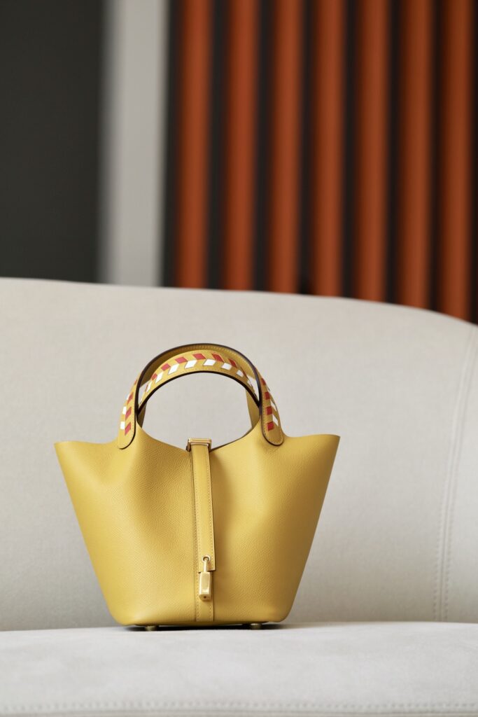 Picotin Lock 18 Epsom Jaune Amber(9D) Palladium Hardware