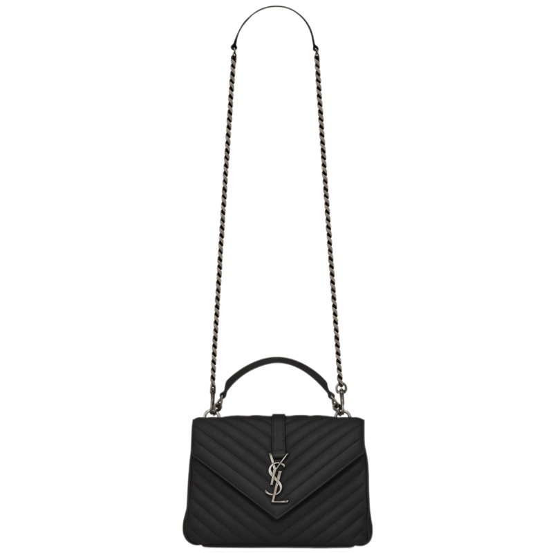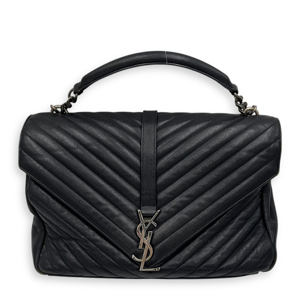 College Large Grey Shoulder Bag in Calfskin, Silver hardware
