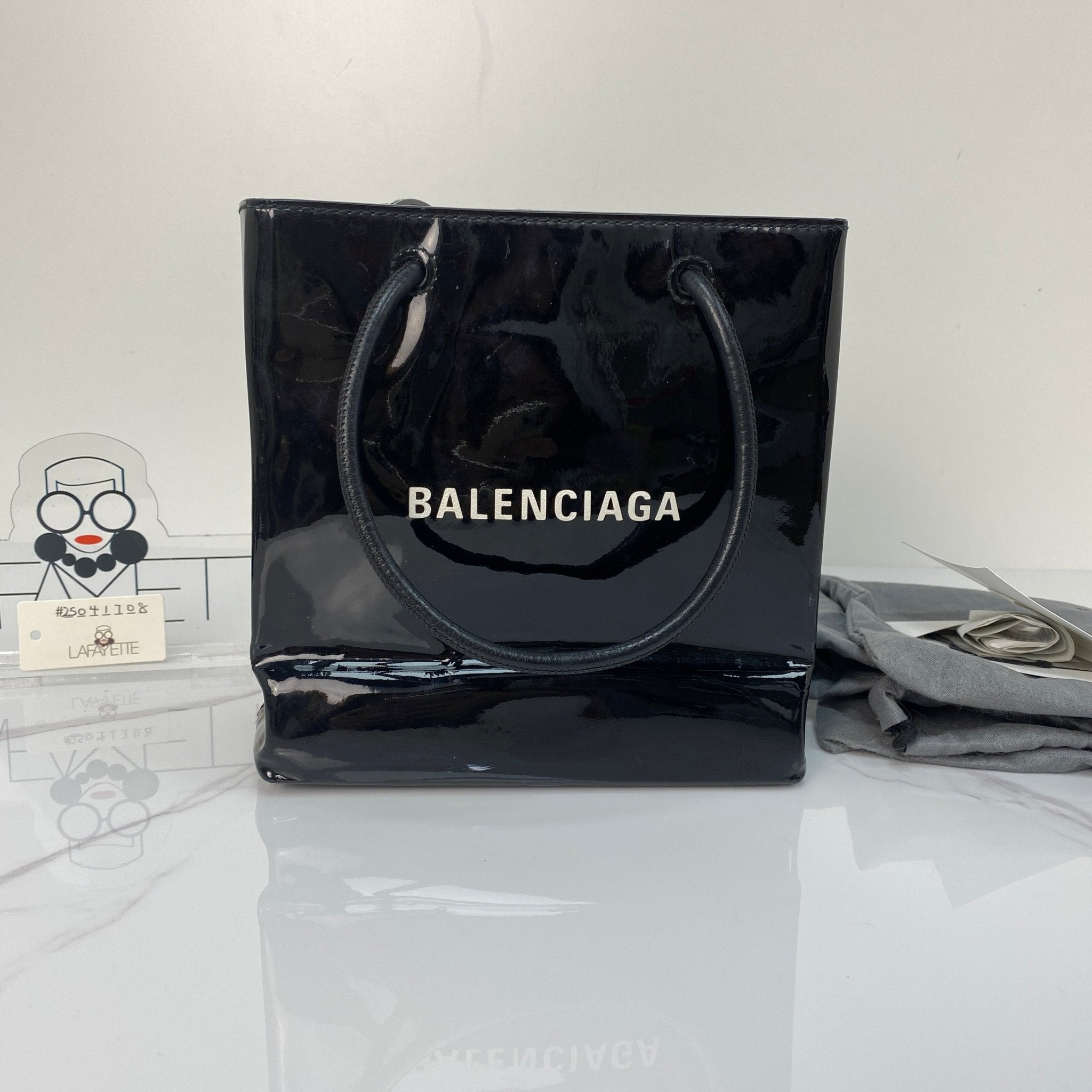 The Balenciaga Logo Shopping Tote in black patent leather is the definition of downtown cool. Sharp, glossy, and endlessly functional—it elevates streetwear, suiting, and everything in between.