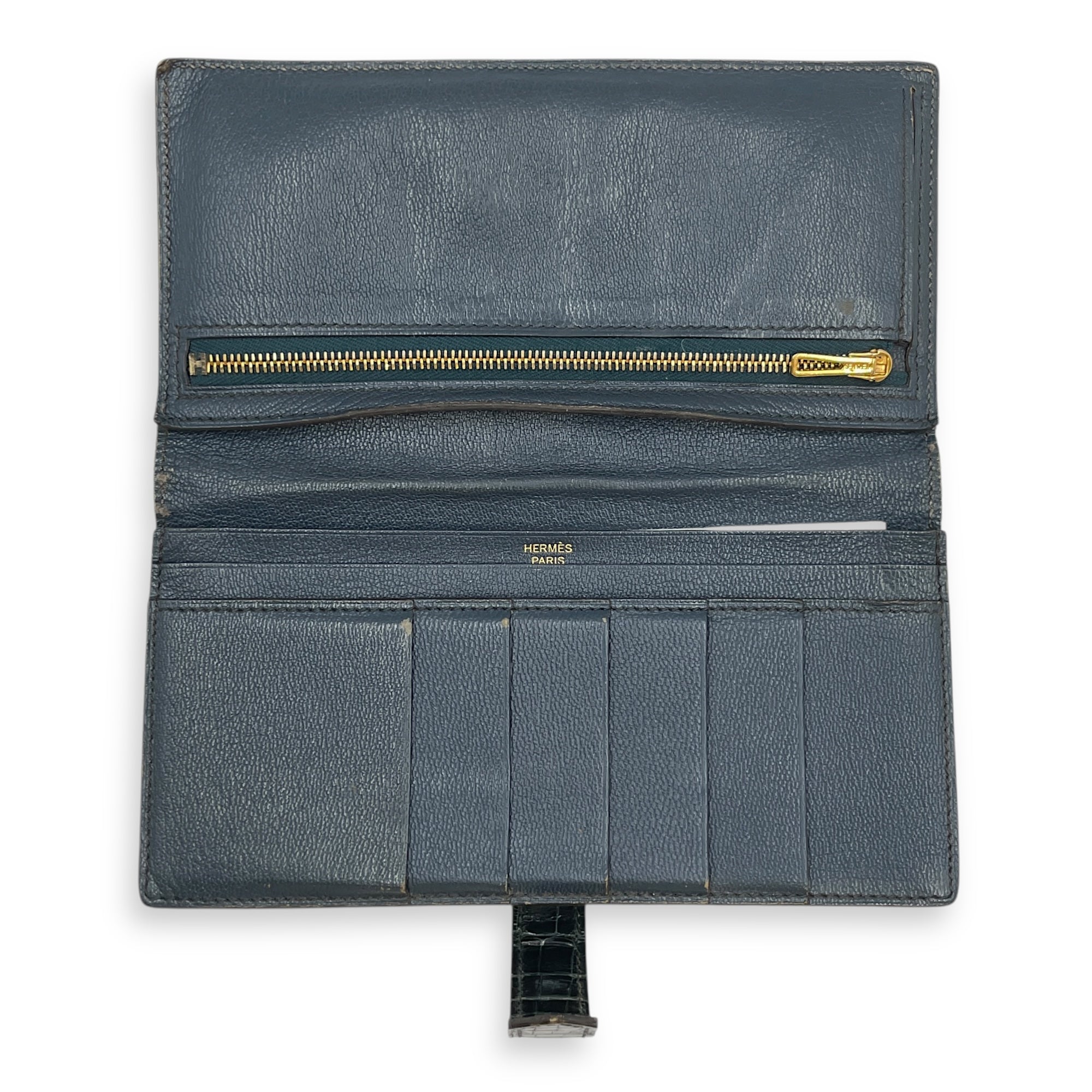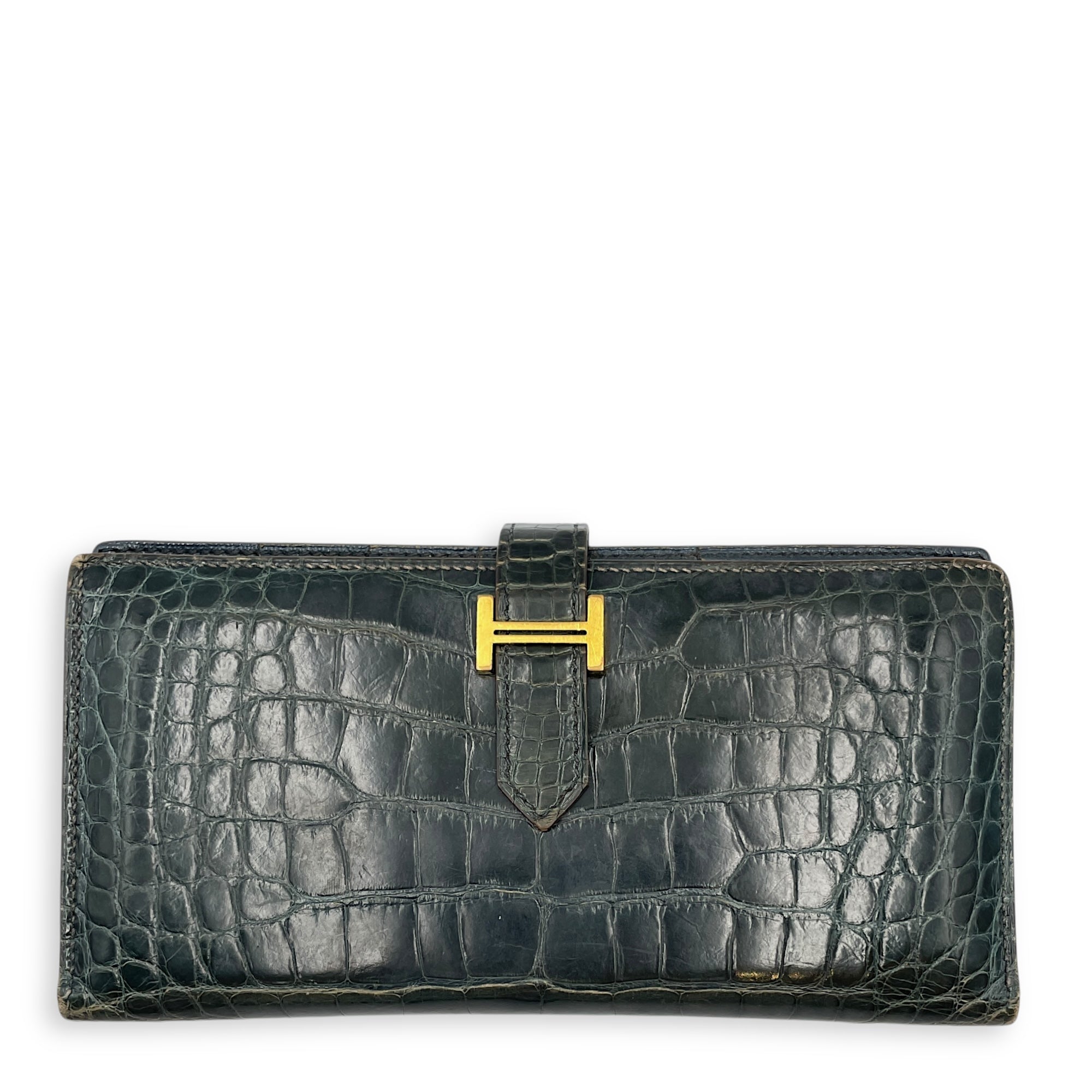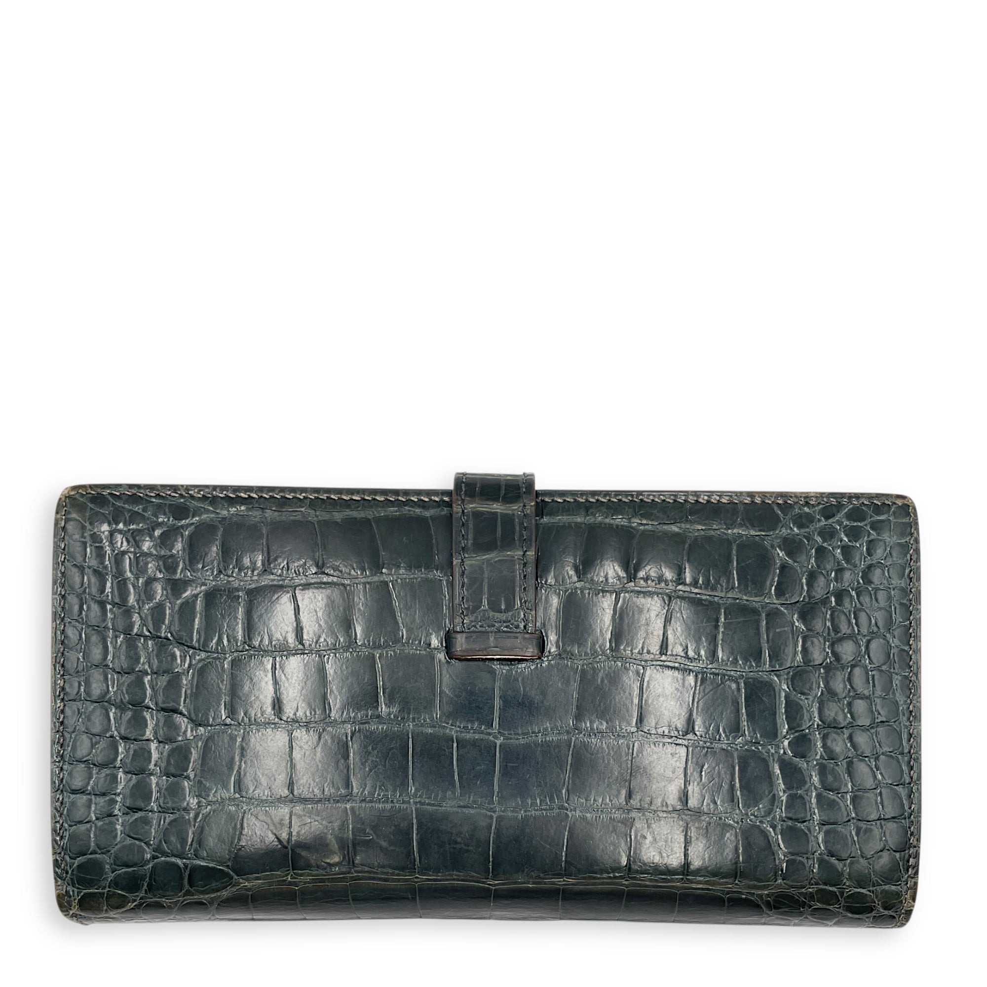 Be the first to review “Bearn Bi Fold Colvert Long Wallet in Shiny Alligator, Palladium hardware”
