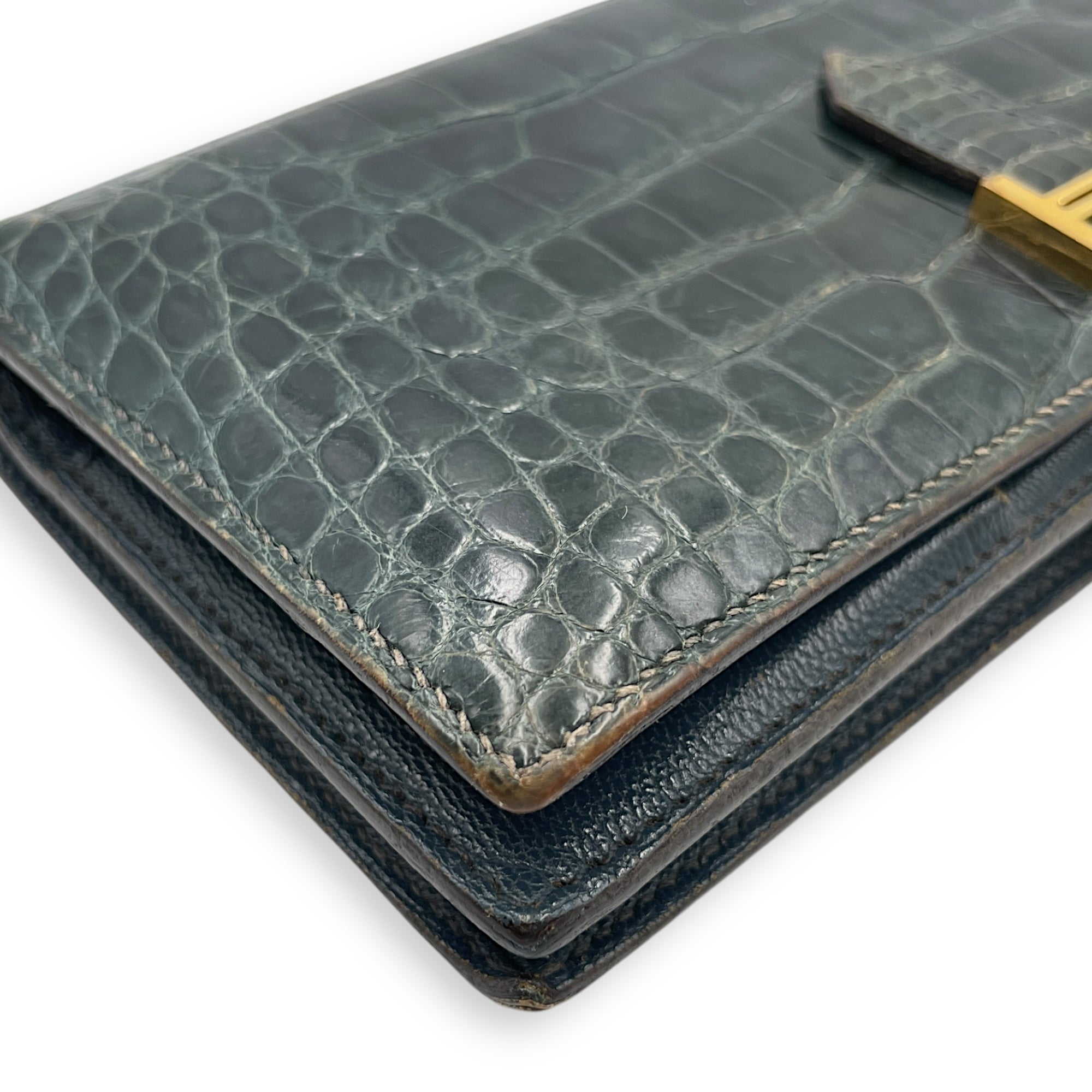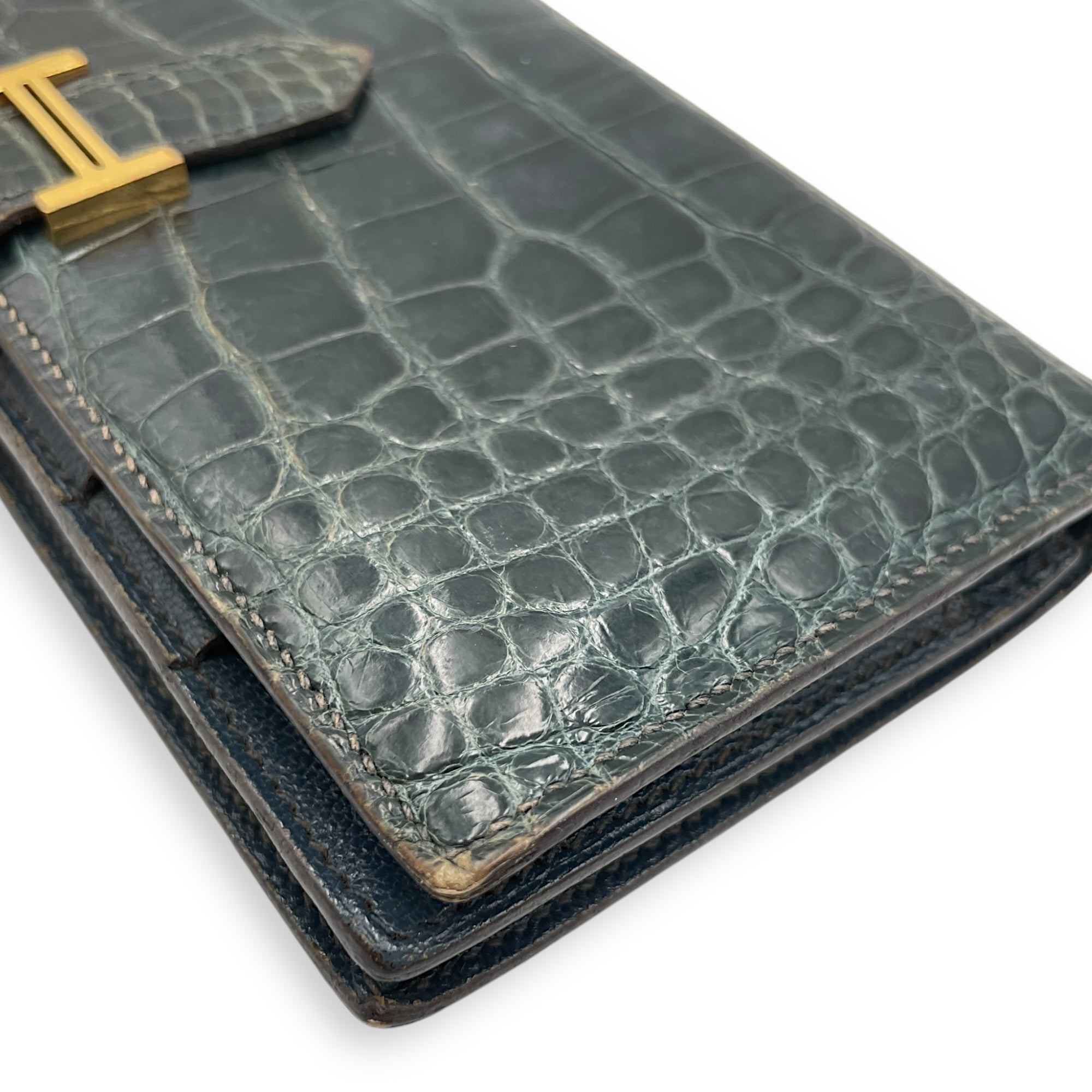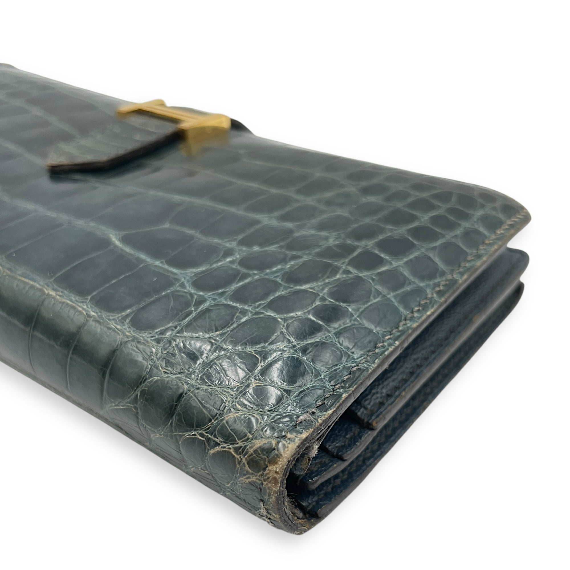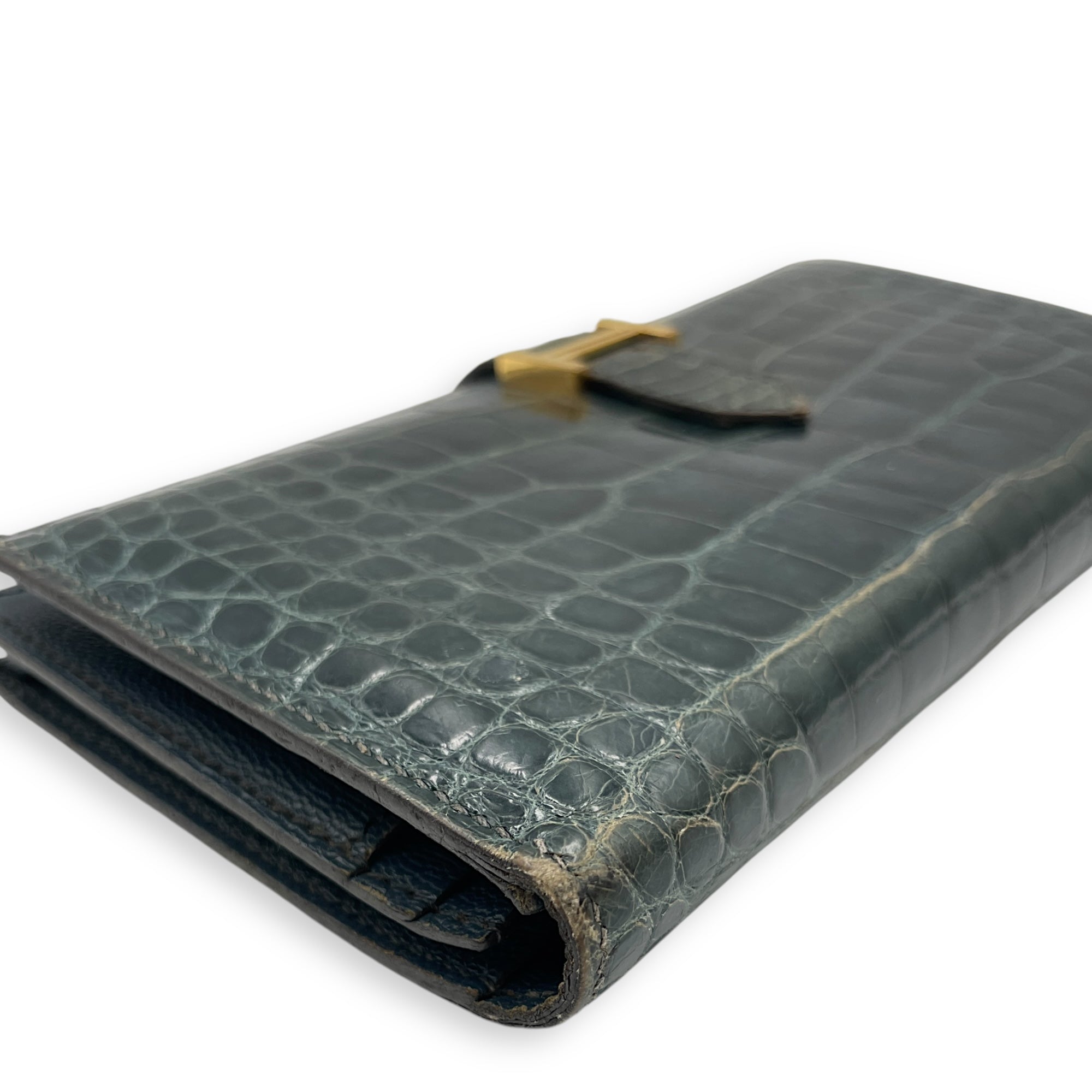 Be the first to review “Bearn Bi Fold Colvert Long Wallet in Shiny Alligator, Palladium hardware”