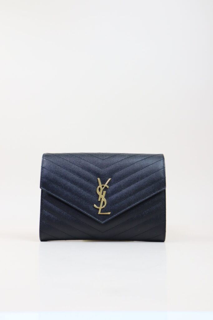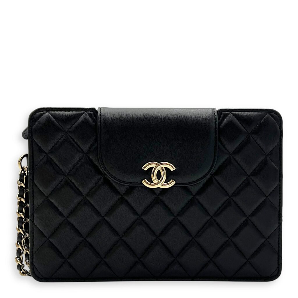 The subtle color gradient on the perforated Monogram pattern, along with the light gold-tone chain, adds a touch of understated charm.
