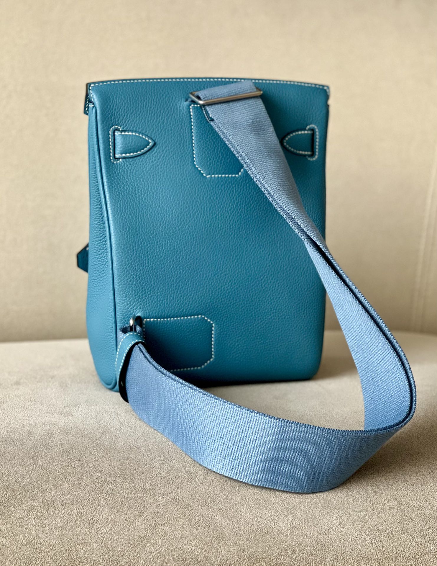 Be the first to review “Birkin Hac a Dos PM Backpack Togo Blue Jean (75) Palladium Hardware”
