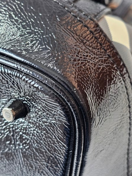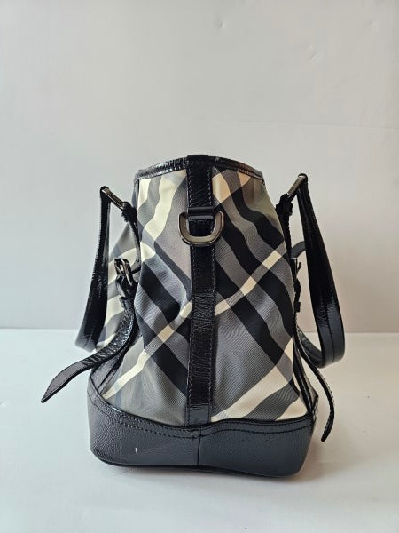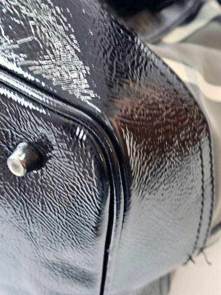 • Material: Black/Grey Beat Check Nylon and Black Patent Leather