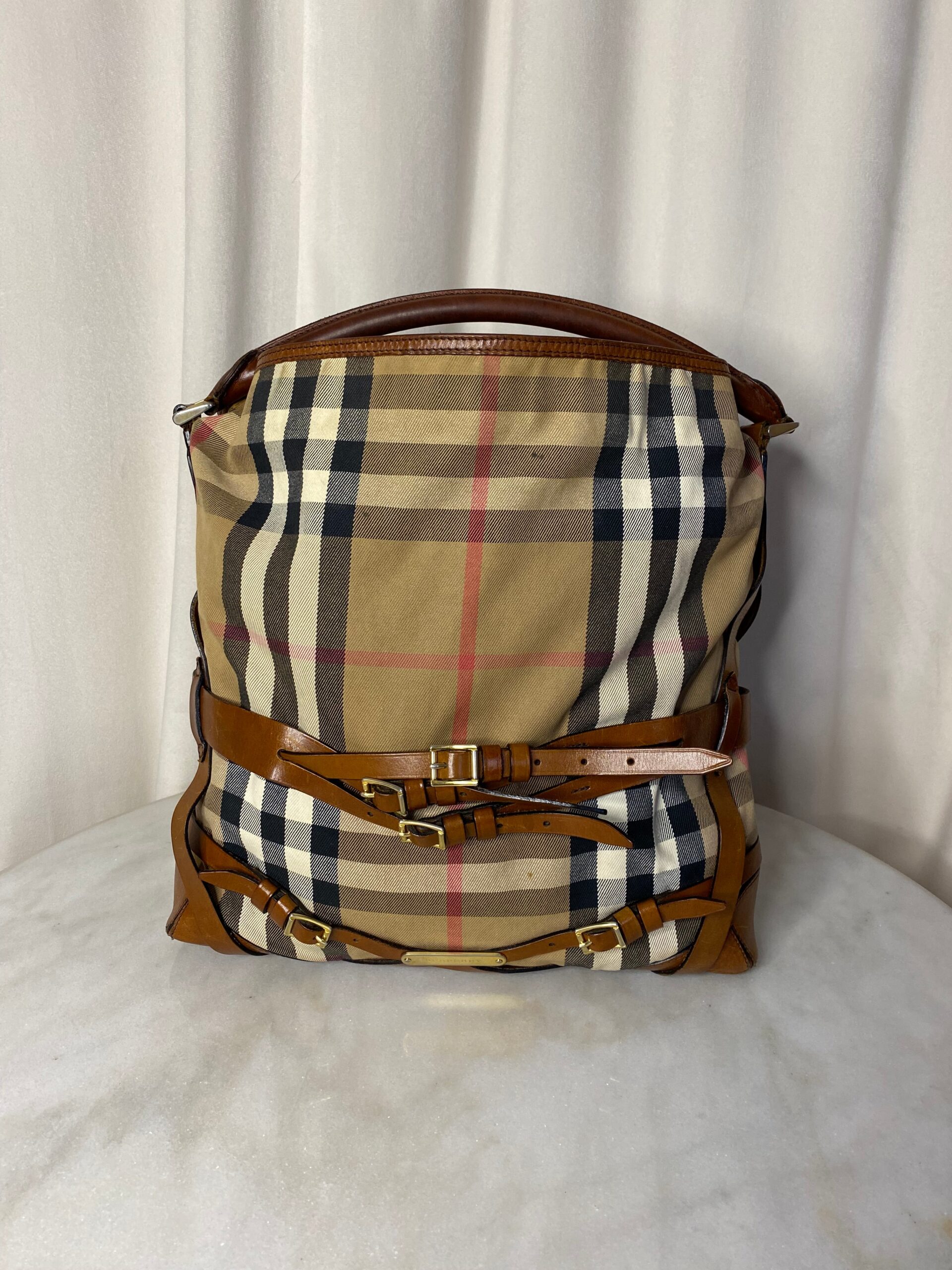 Burberry Camel Bridle House Check Top Handle Bag
