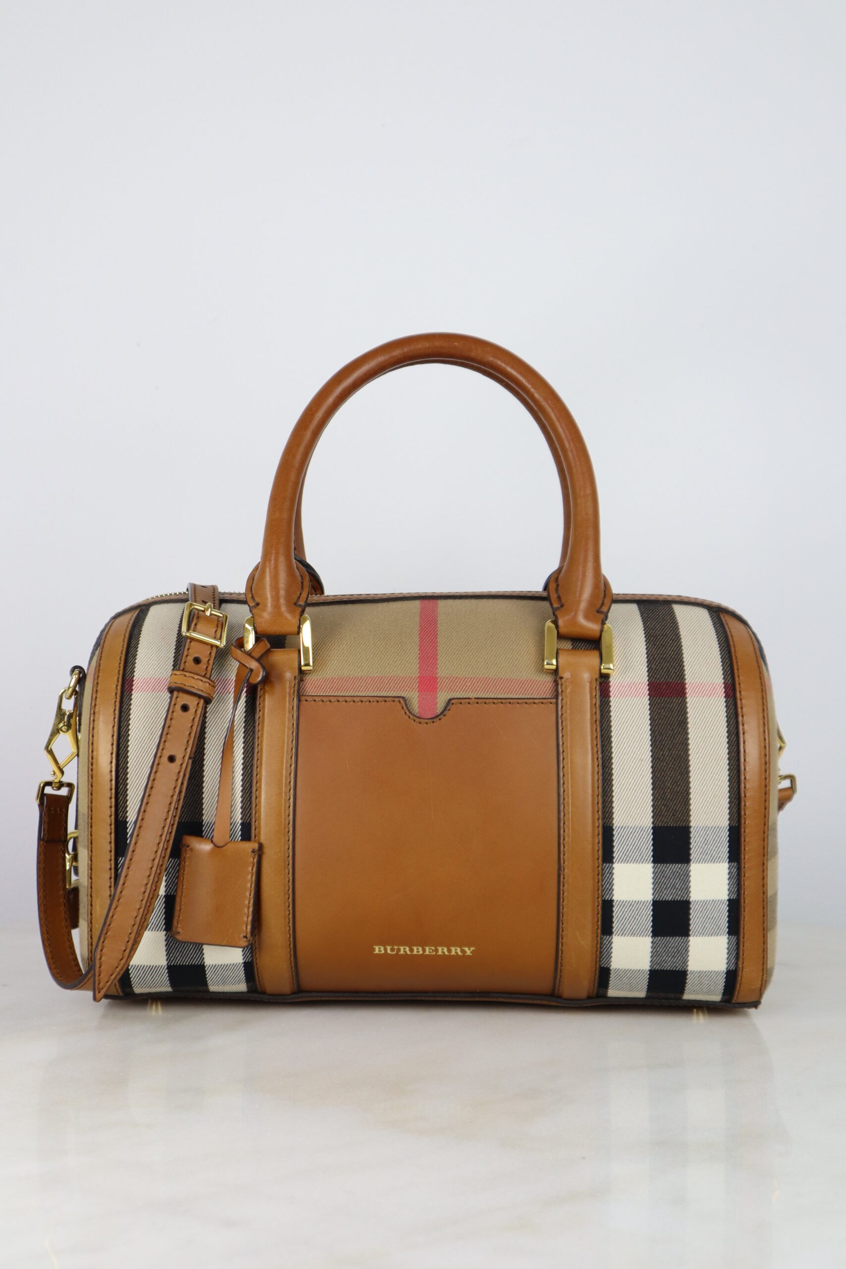 Burberry House Check Camel Derby Boston Alchester Bowling Medium Bag