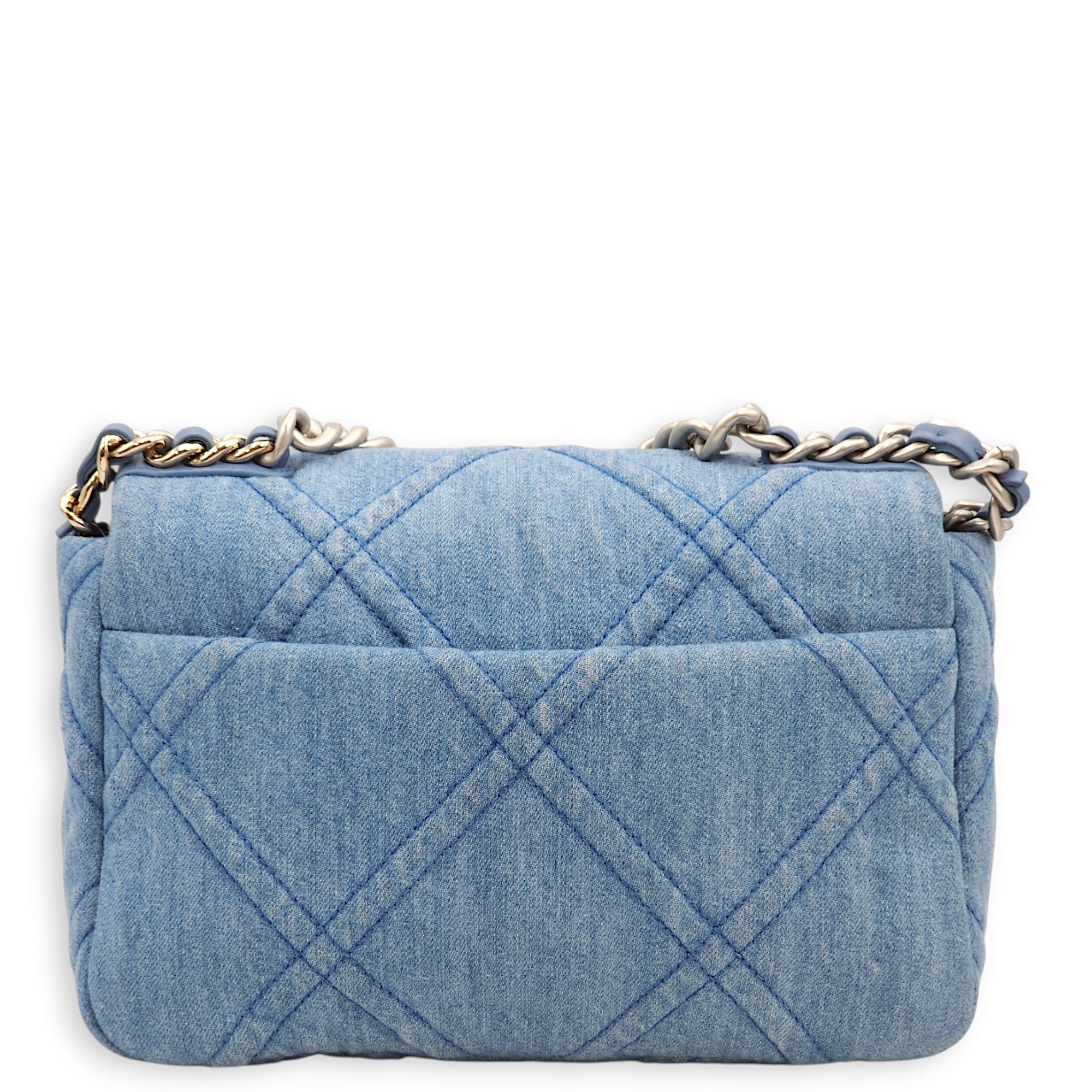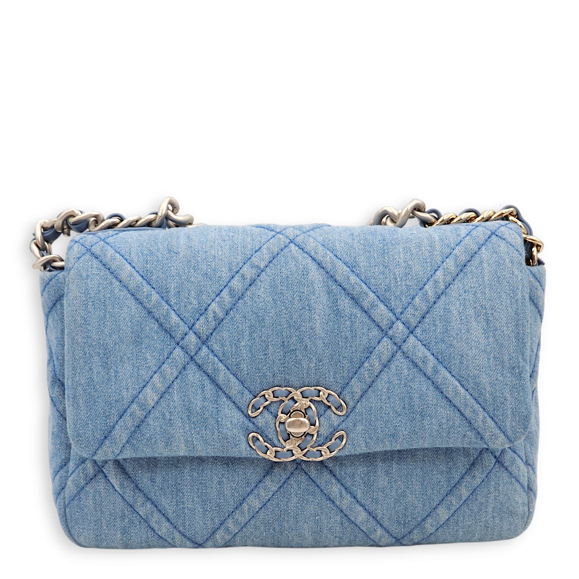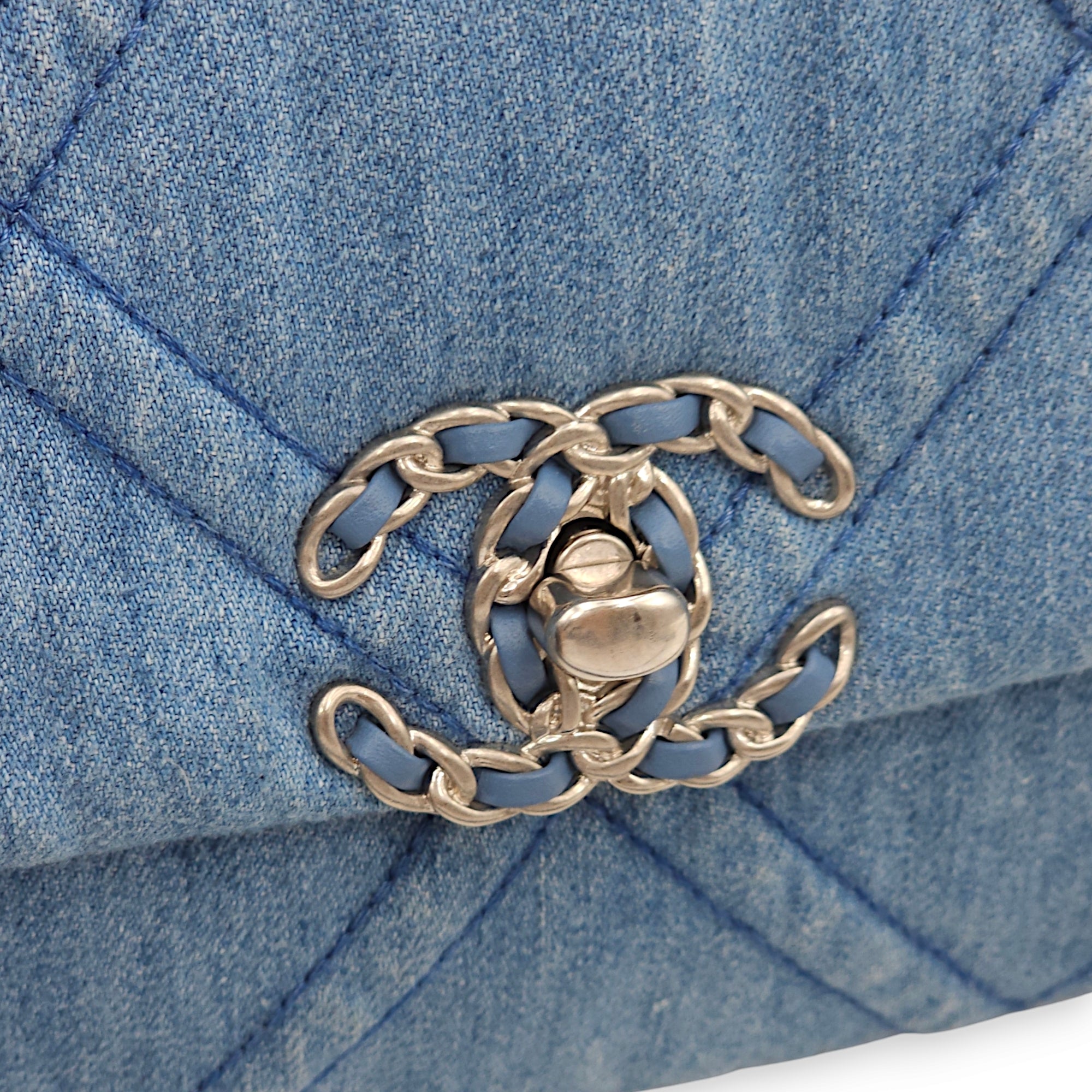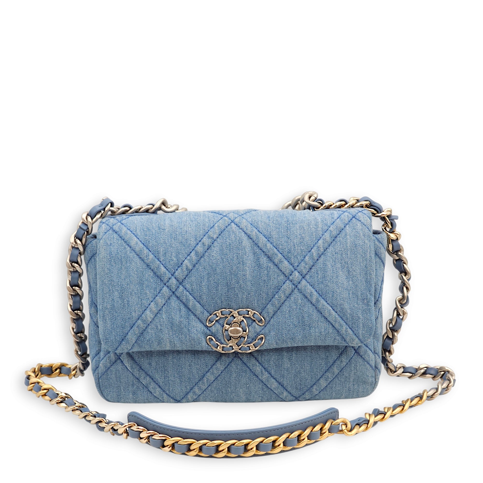 C19 Small Light Blue Shoulder Bag in Denim, 3-Tone hardware