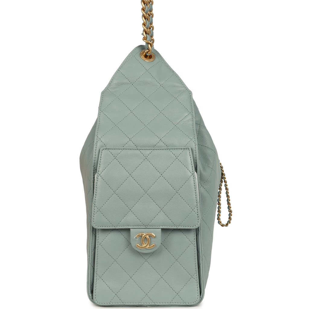 Chanel Medium 25 Hobo Bag Green Caviar Antique Gold Hardware Shop for an authentic Chanel Medium 25 Hobo Bag in green caviar with antique gold hardware in new and never worn condition at Madison Avenue Couture.