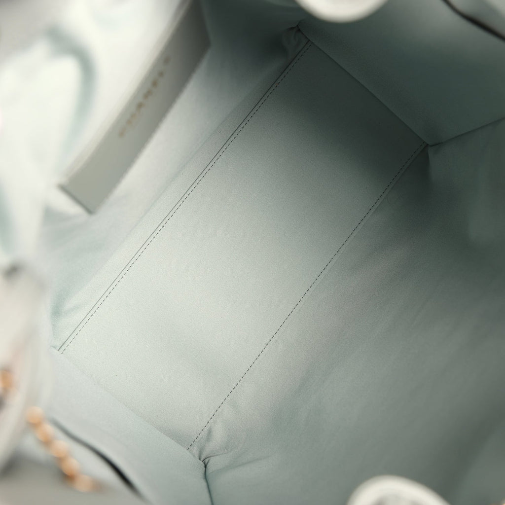 Collection: 25A (RFID chip)Origin: ItalyCondition: New and never worn (plastic on the front CC turnlock hardware)Accompanied by: Chanel box (damaged lid), Chanel dustbag, two felts (for side pockets), RFID chip, removable pouchMeasurements: 11.5″ width x 11.5″ height x 5.5″ depth; shoulder strap drop: 15″