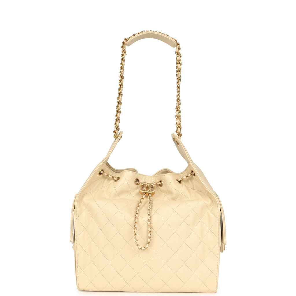 Chanel Medium 25 Hobo Bag Light Beige Caviar Antique Gold Hardware