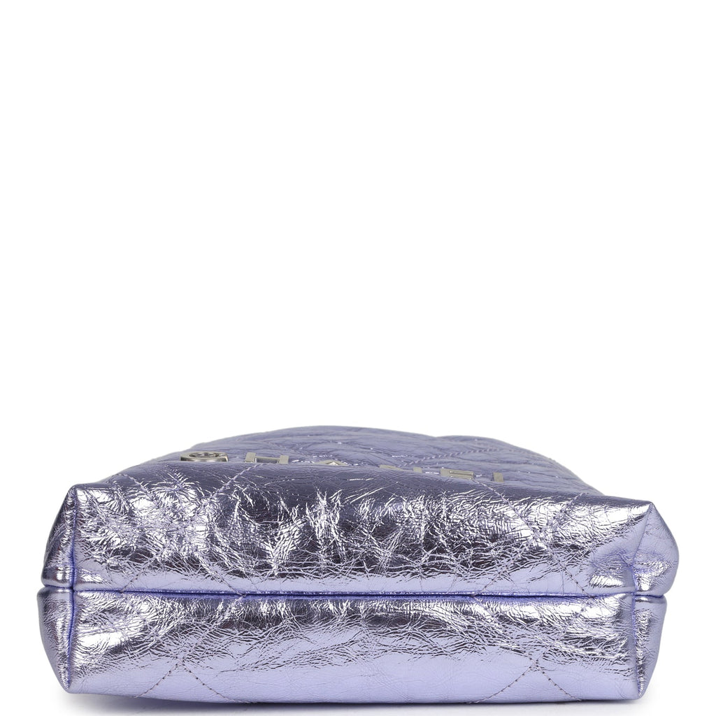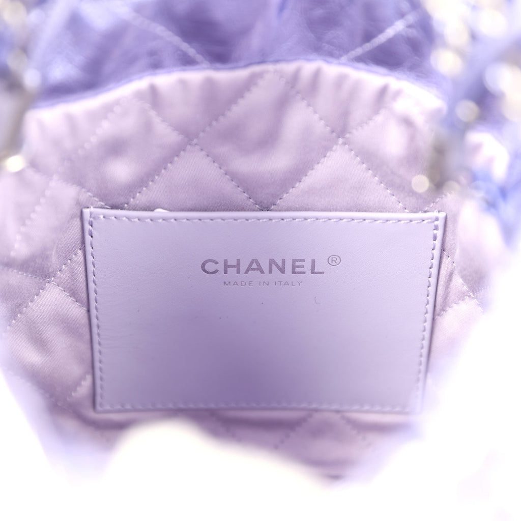 Chanel Mini 22 Bag Purple Metallic Calfskin Brushed Silver Hardware Shop for an authentic Chanel Mini 22 bag in metallic purple calfskin leather with brushed silver tone hardware in new and never worn condition at Madison Avenue Couture.