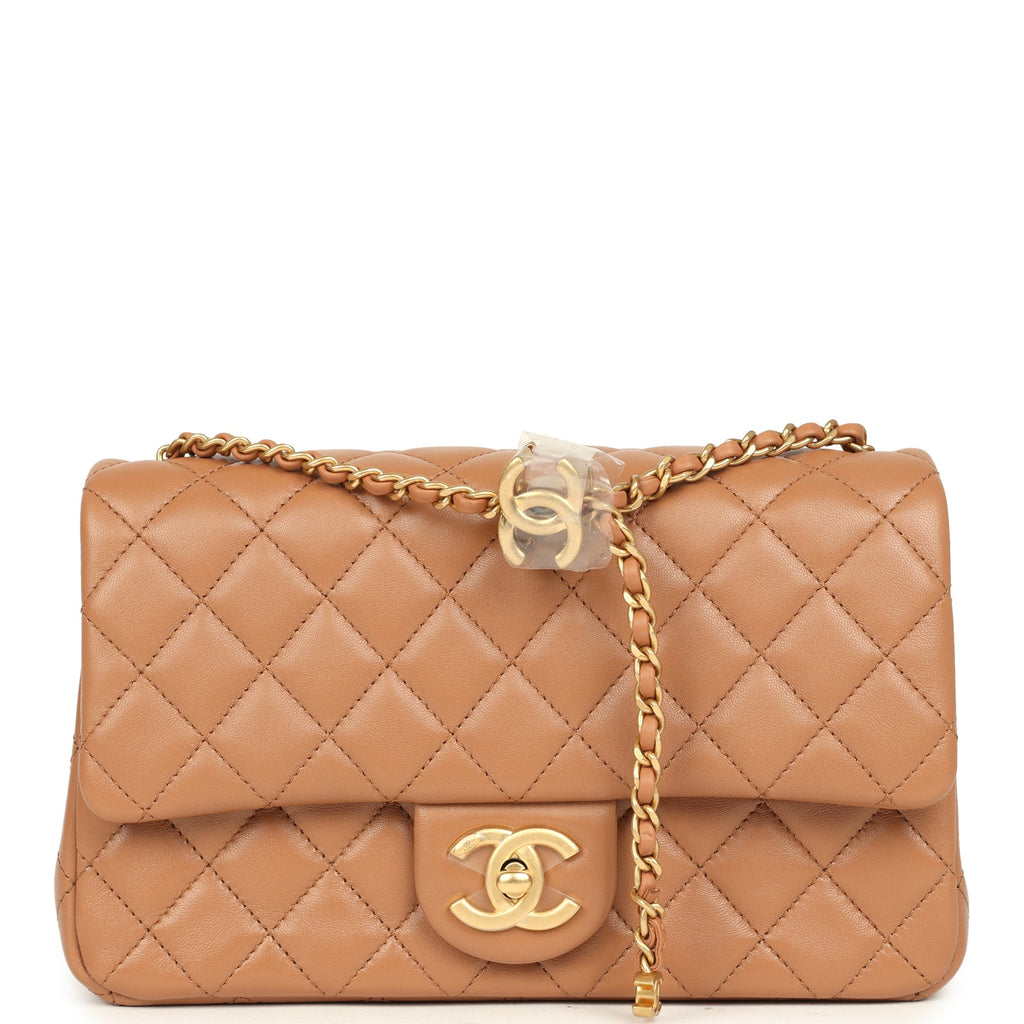 Chanel Mini Shearling Flap Bag Brown Lambskin Brushed Gold Hardware Shop for an authentic Chanel Mini Shearling Flap in brown lambskin and shearling with brushed gold hardware in new and never worn condition at Madison Avenue Couture.