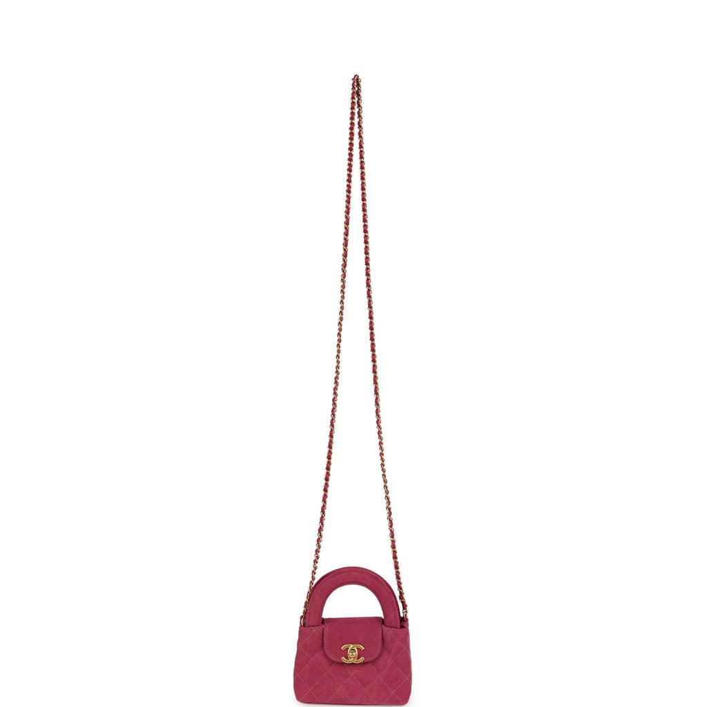Chanel Nano Kelly Shopper Fuchsia Washed Denim Brushed Gold Hardware Shop for an authentic Chanel Nano Kelly in fuchsia washed denim with brushed gold hardware in new and never worn condition at Madison Avenue Couture.