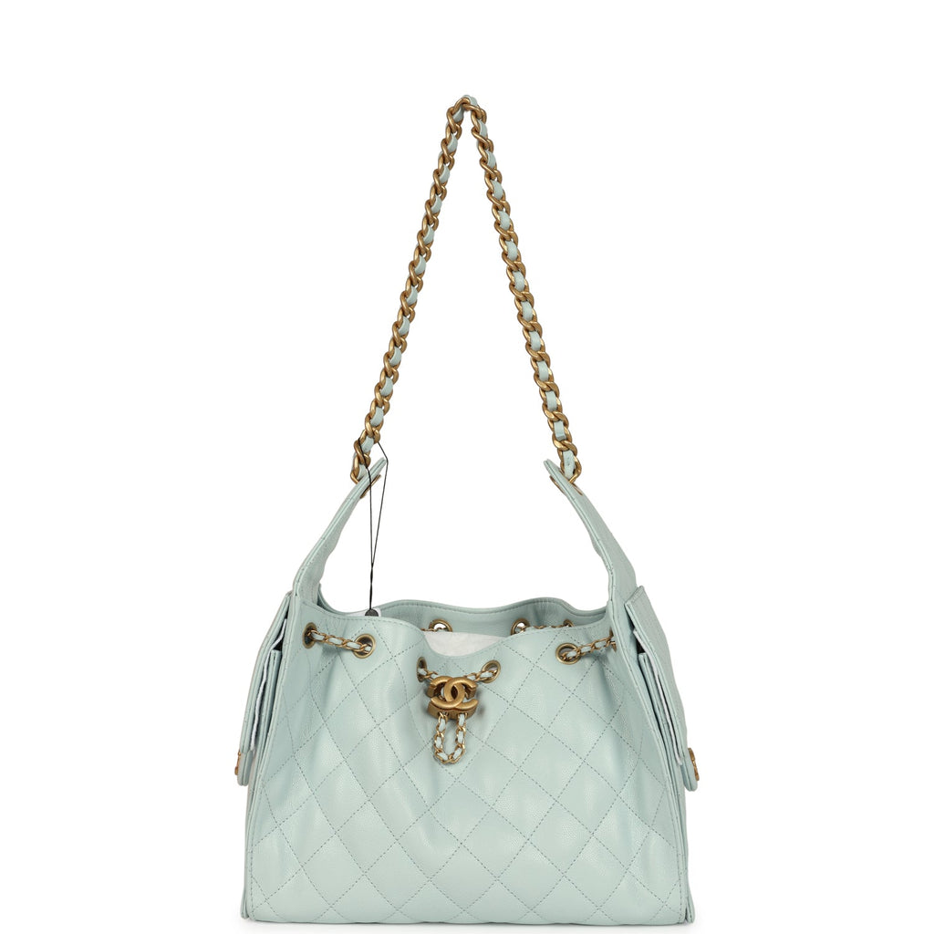 Chanel Small 25 Hobo Bag Light Blue Caviar Antique Gold Hardware
