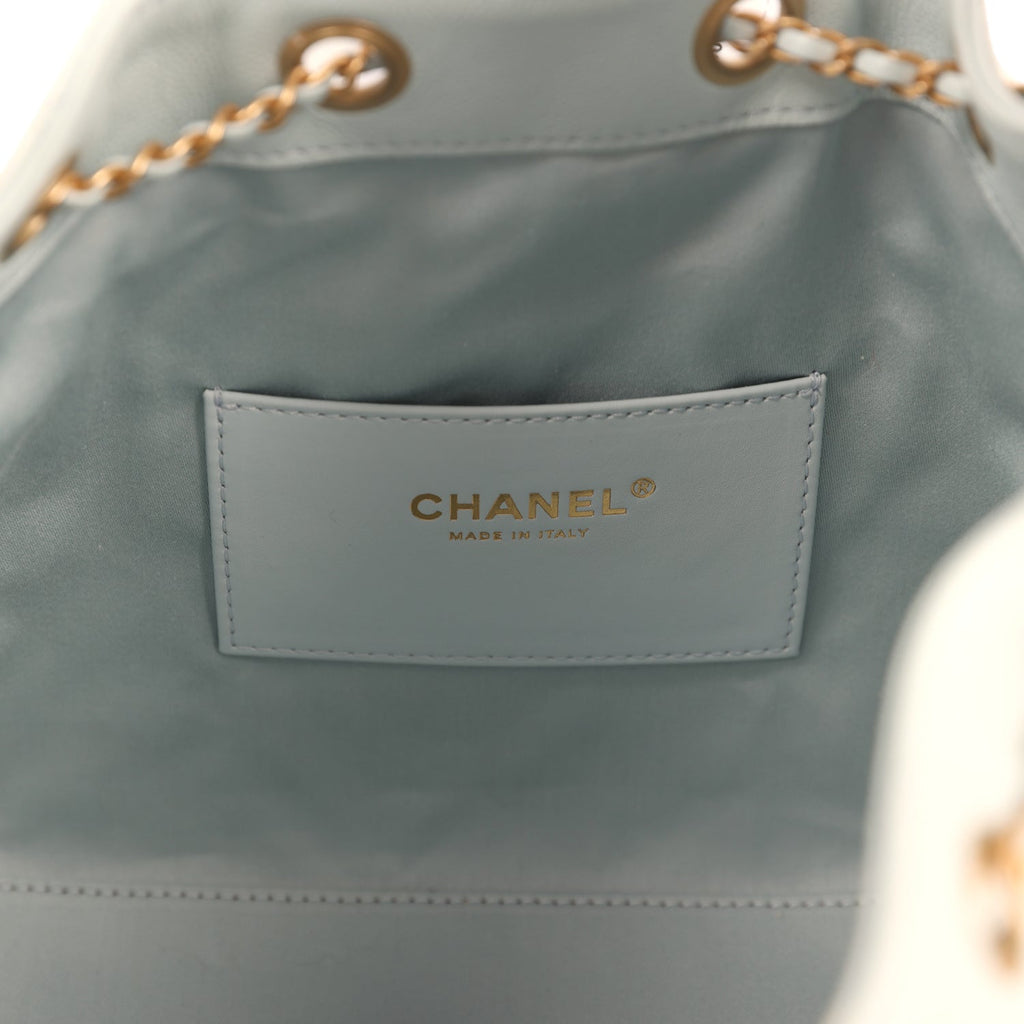 This Chanel Small 25 Hobo Bag is in light blue shiny caviar leather with antique gold hardware, features signature diamond quilt, two exterior side pockets, drawstring closure, and a single interwoven Antique gold and light blue leather shoulder strap.The interior is lined in light blue grossgrain fabric and has three small slit pockets; one on the rear wall and one slit pocket on each interior side.