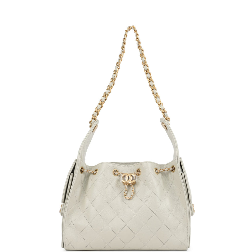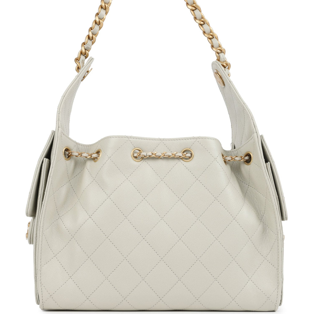 Chanel Small 25 Hobo Bag Light Grey Caviar Antique Gold Hardware