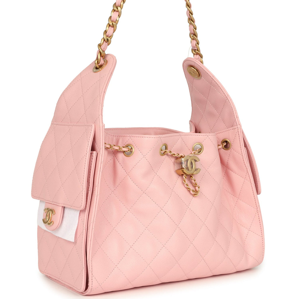 Chanel Small 25 Hobo Bag Light Pink Caviar Antique Gold Hardware Shop for an authentic Chanel Small 25 Hobo Bag in light pink caviar with antique gold hardware in new and never worn condition at Madison Avenue Couture.