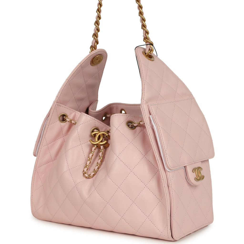 Chanel Small 25 Hobo Bag Light Pink Caviar Antique Gold Hardware