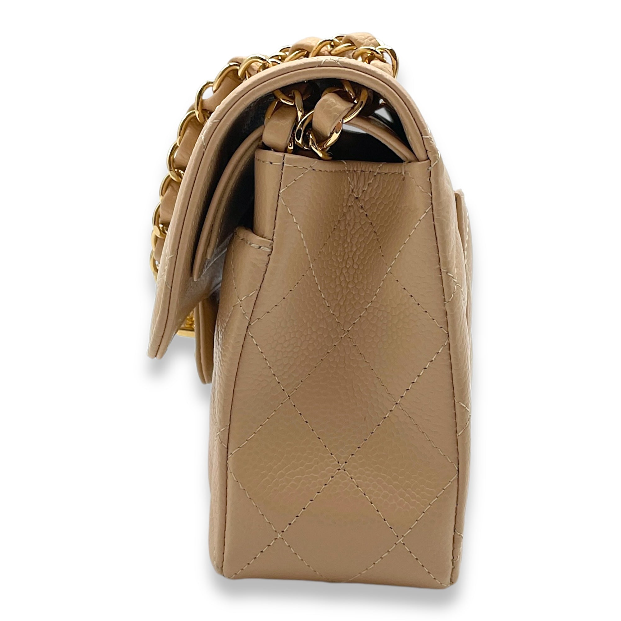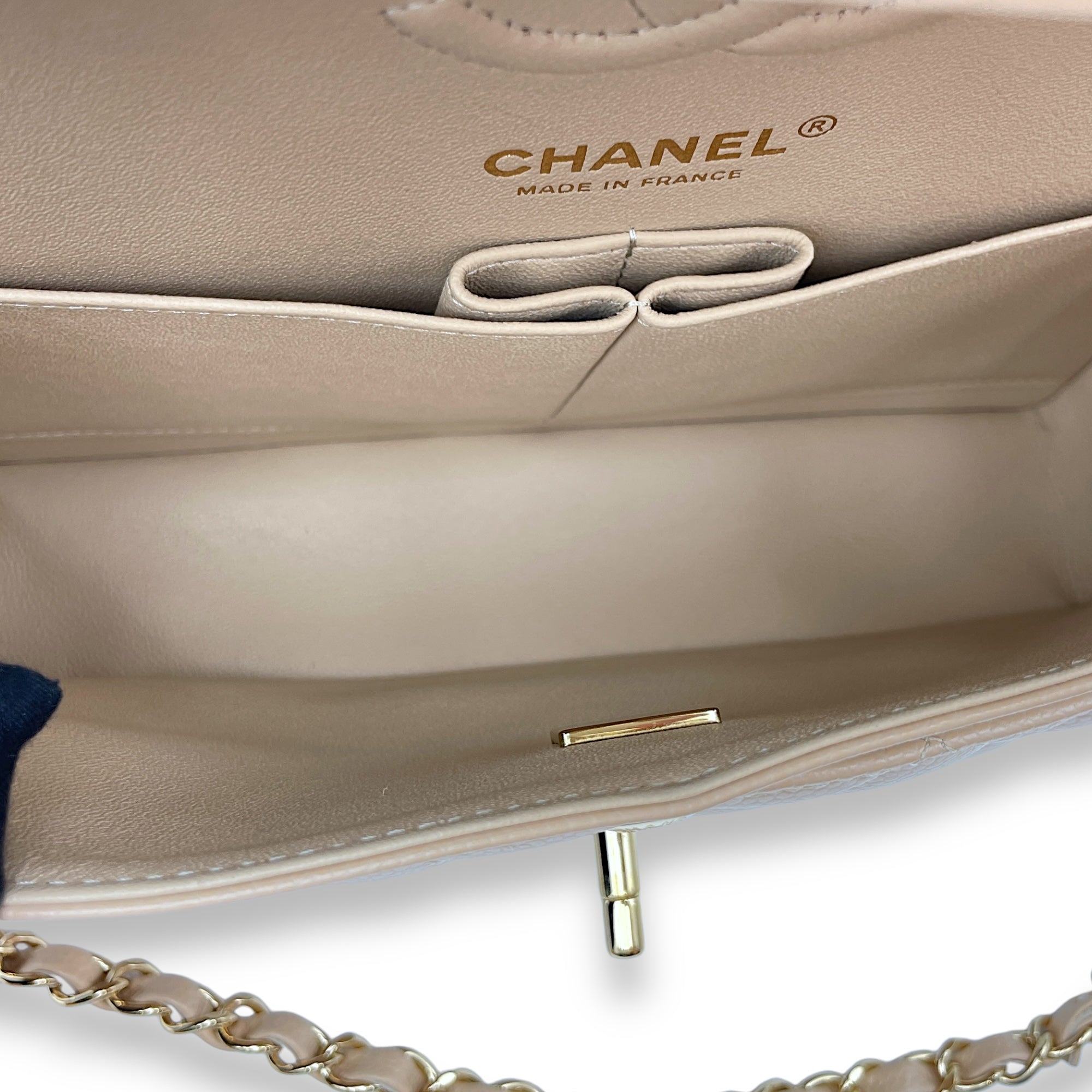 Be the first to review “Classic Double Flap Small Beige Clair Shoulder Bag in Caviar Leather, Gold hardware”