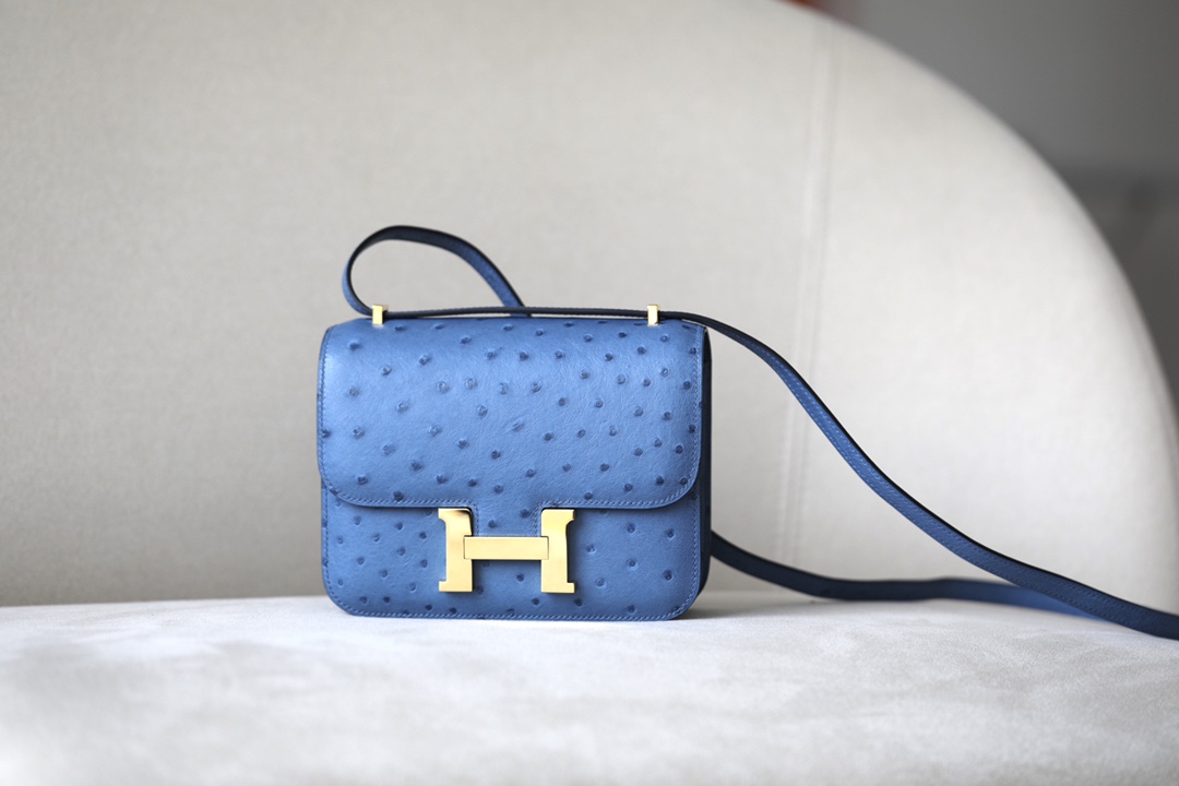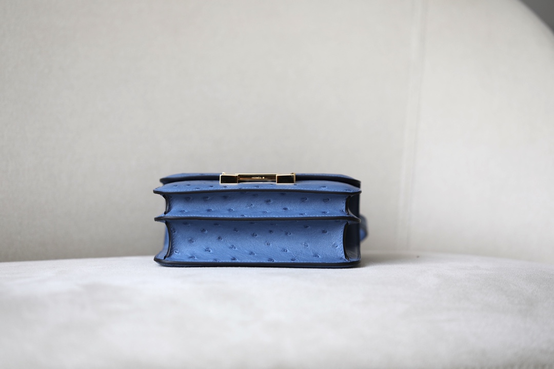Constance 19 Ostrich Bleu Hydra (T7) Gold Hardware