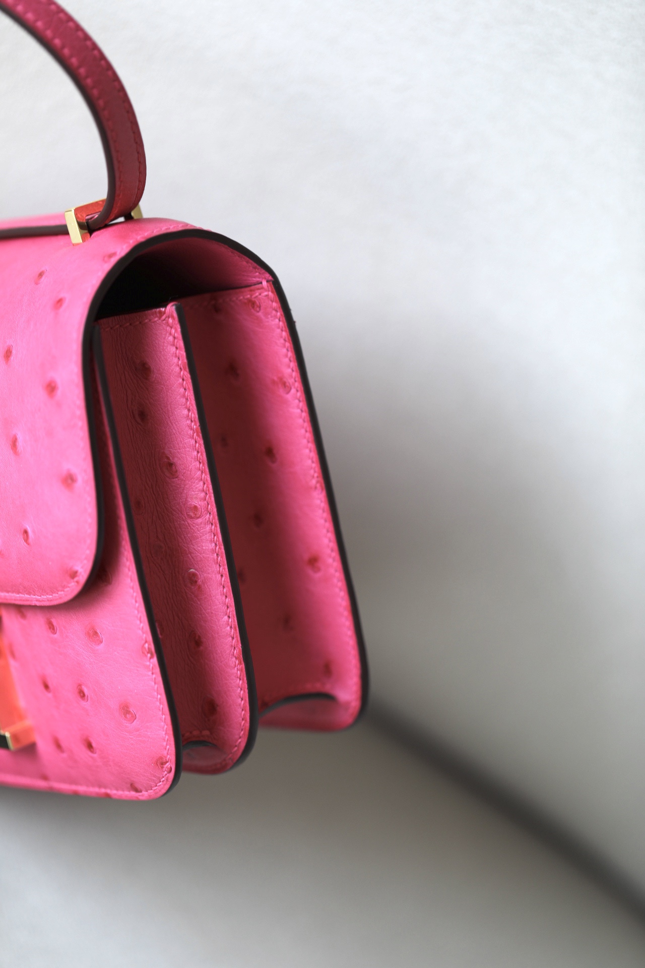 Constance 19 Ostrich Rose Tyrien (E5) Gold Hardware