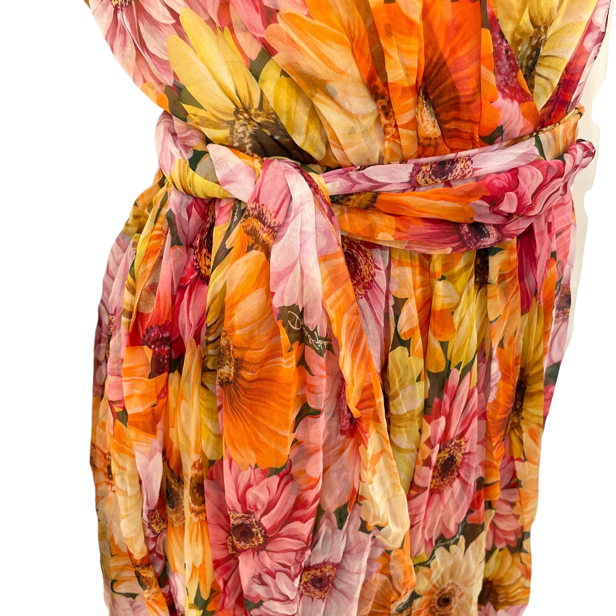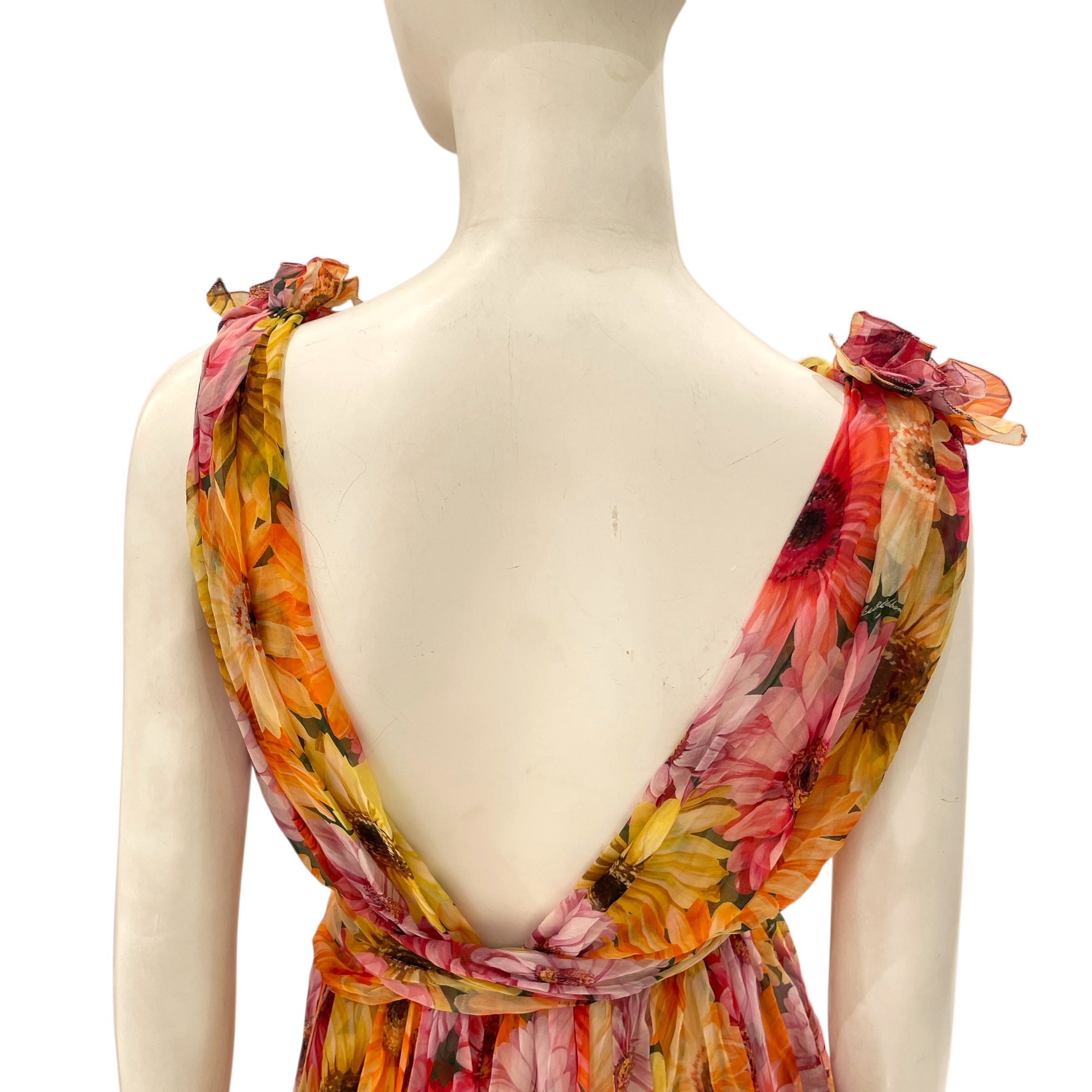 Daisy-Print Chiffon Plunge Dress 38 Multi-colour Ready-To-Wear in Silk