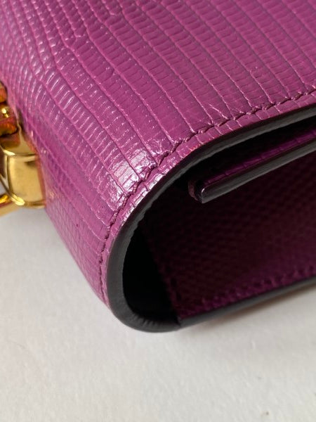 • Material: Purple Iguana Print Leather with Gold Bee Embellishment