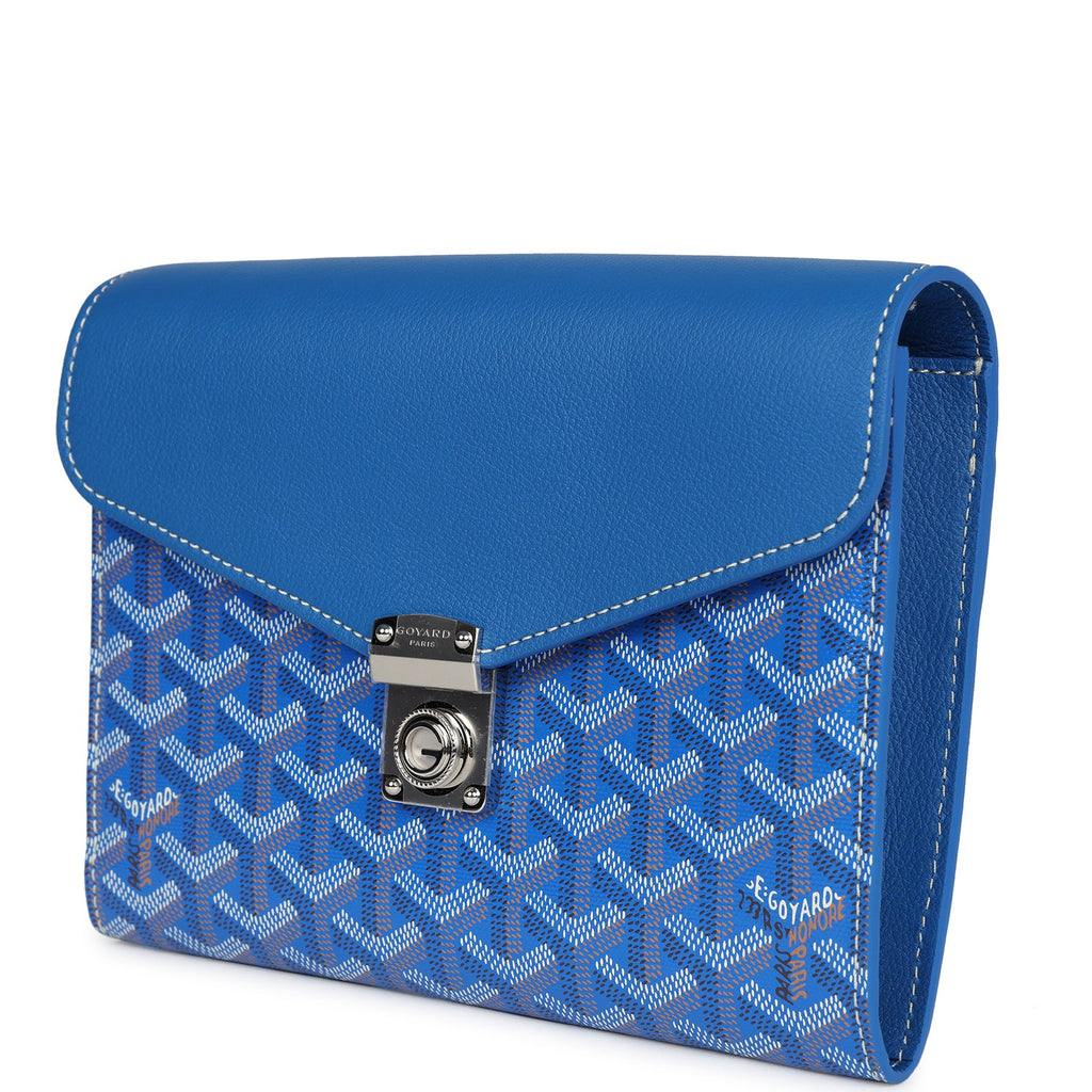 Goyard Goyardine Sky Blue Chypre Wallet-Pouch Palladium Hardware Shop for an authentic Goyard Goyardine Canvas Chypre Wallet-Pouch in sky blue with palladium hardware in new and never worn condition at Madison Avenue Couture.