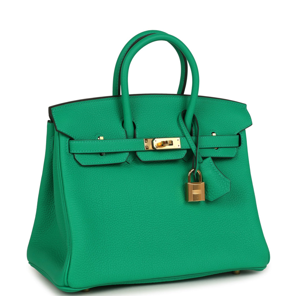 Hermes Birkin 25 Menthe Togo Gold Hardware Shop for an authentic Hermes Birkin 25 in Menthe togo leather with gold hardware in never worn condition at Madison Avenue Couture.