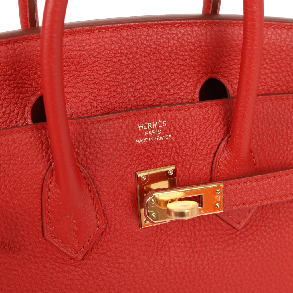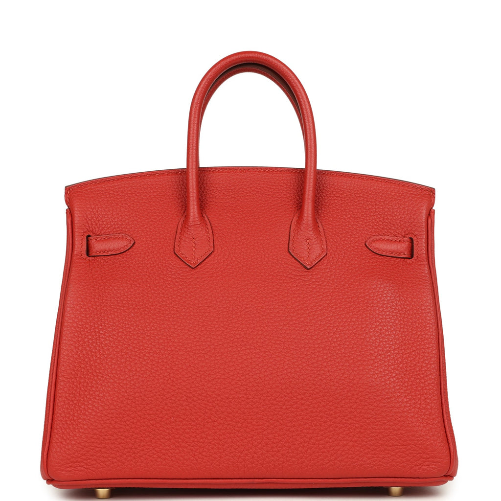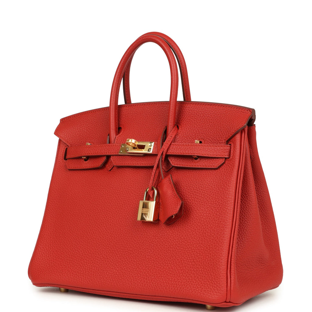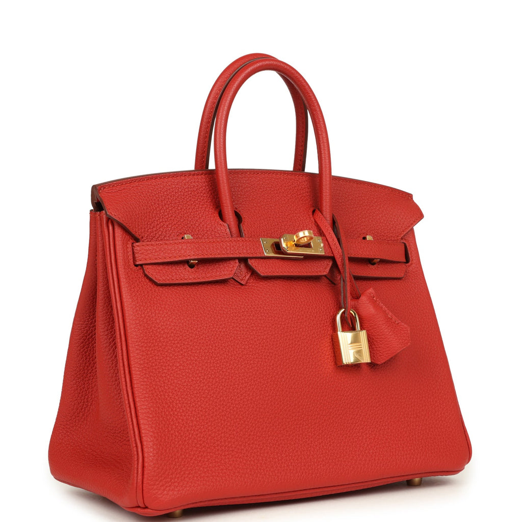 Hermes Birkin 25 Vermillion Togo Gold Hardware Shop for an authentic Hermes Birkin 25 in Vermillion togo leather with gold hardware in never worn condition at Madison Avenue Couture.