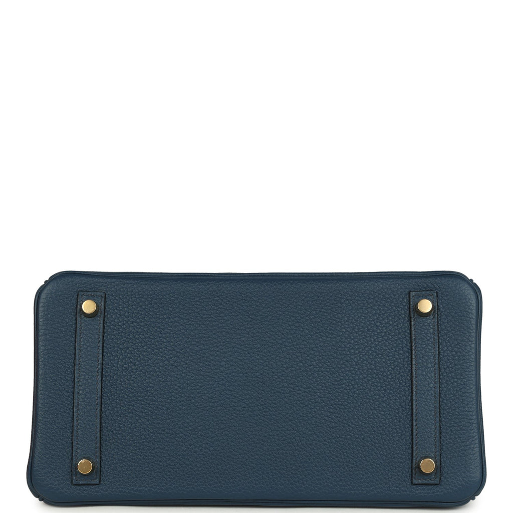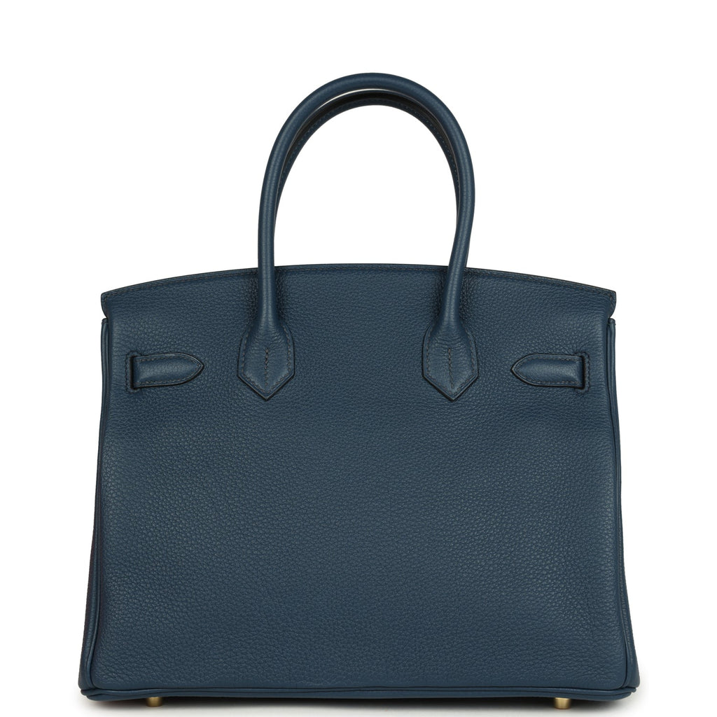 Hermes Birkin 30 Bleu de Prusse Togo Gold Hardware Shop for an authentic Hermes Birkin 30 in Bleu de Prusse togo leather with gold hardware in new and never worn condition at Madison Avenue Couture.