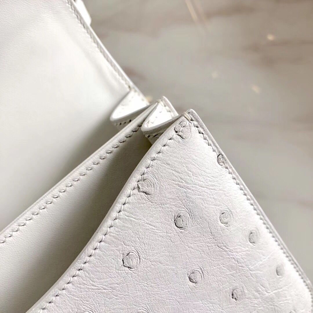 Hermes Constance 18 Handmade Bag In White Ostrich Leather