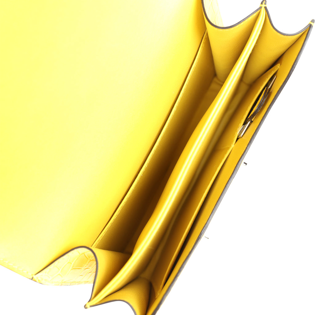 Hermes Constance 18 Mimosa Matte Alligator Palladium Hardware Shop for an authentic Hermes Constance 1-18 in Mimosa Matte Alligator Mississippiensis leather with palladium hardware in new and never worn condition at Madison Avenue Couture.
