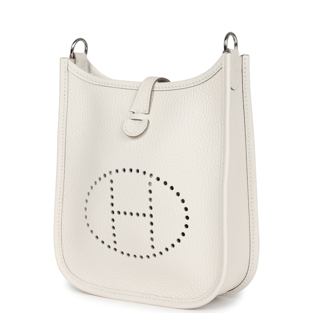 Hermes Evelyne TPM Gris Pale Clemence Palladium Hardware Shop for an authentic Hermes Evelyne TPM in Gris Pale clemence leather with palladium hardware in new and never worn condition at Madison Avenue Couture.