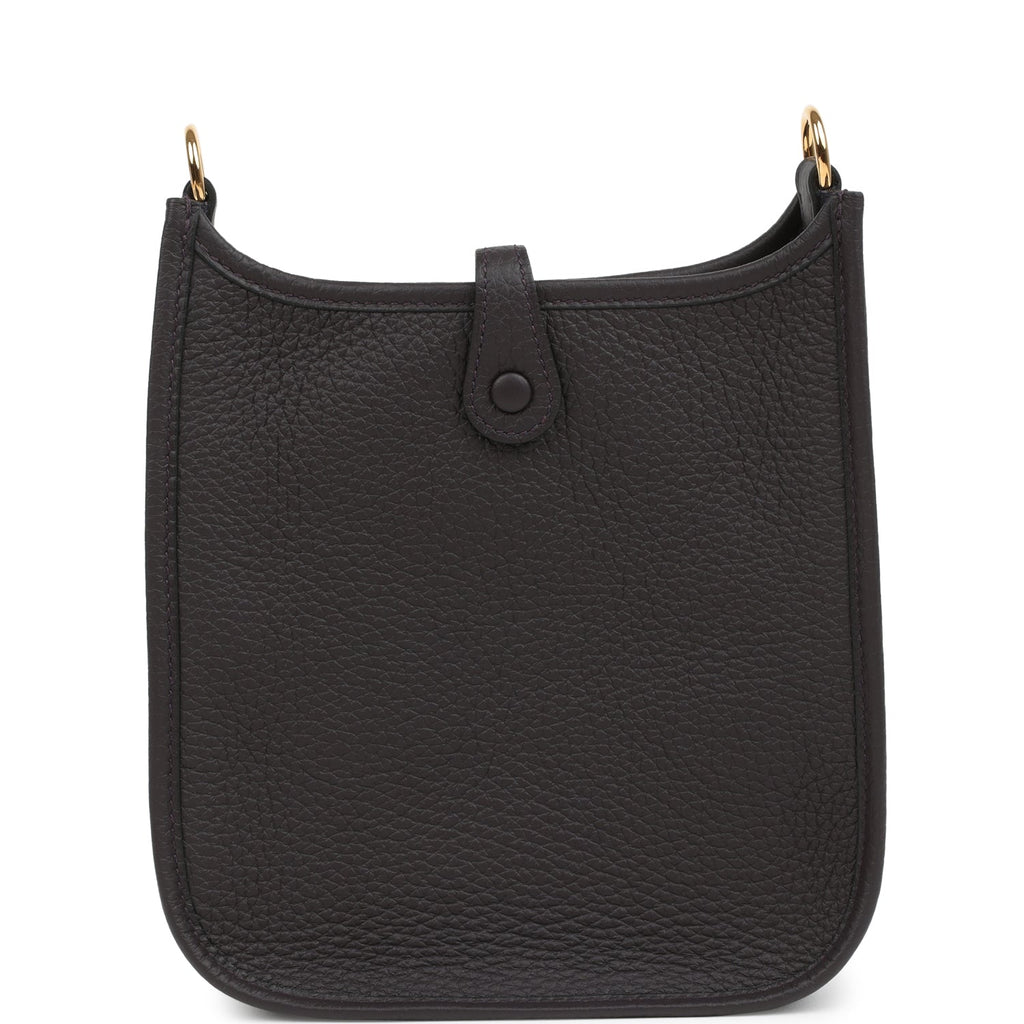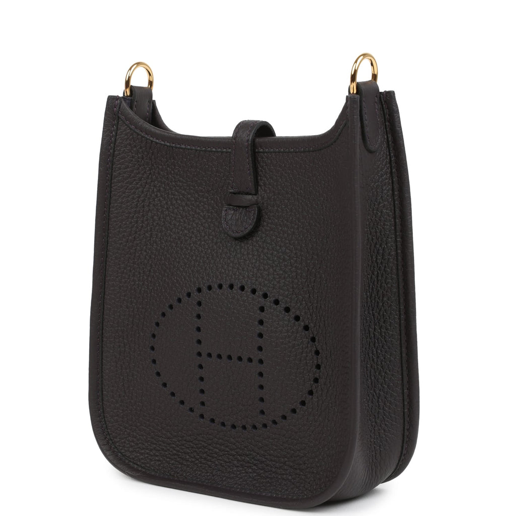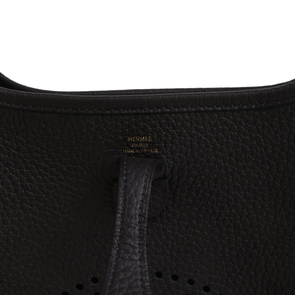 Hermes Evelyne TPM Prunoir Clemence Gold Hardware Shop for an authentic Hermes Evelyne TPM in Prunoir clemence leather with gold hardware in new and never worn condition at Madison Avenue Couture.