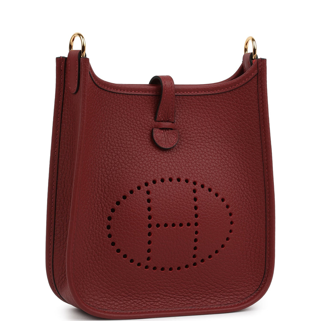 Hermes Evelyne TPM Rouge H Clemence Gold Hardware Shop for an authentic Hermes Evelyne TPM in Rouge H clemence leather with gold hardware in new and never worn condition at Madison Avenue Couture.