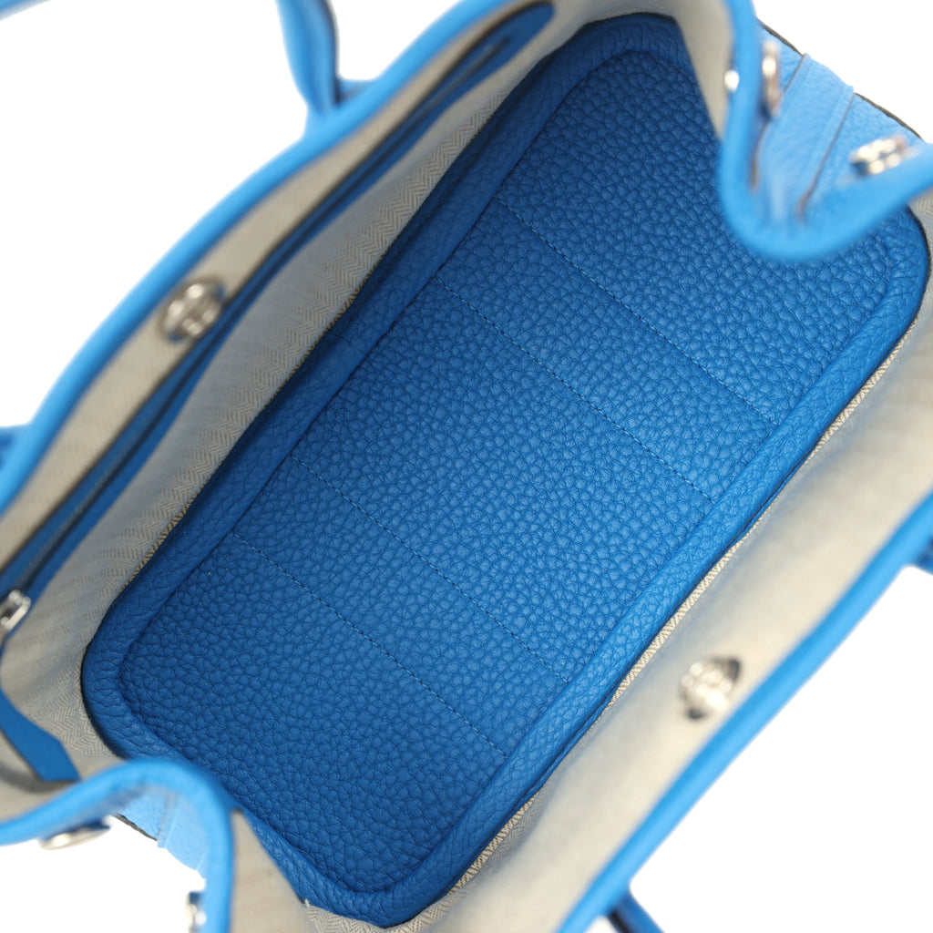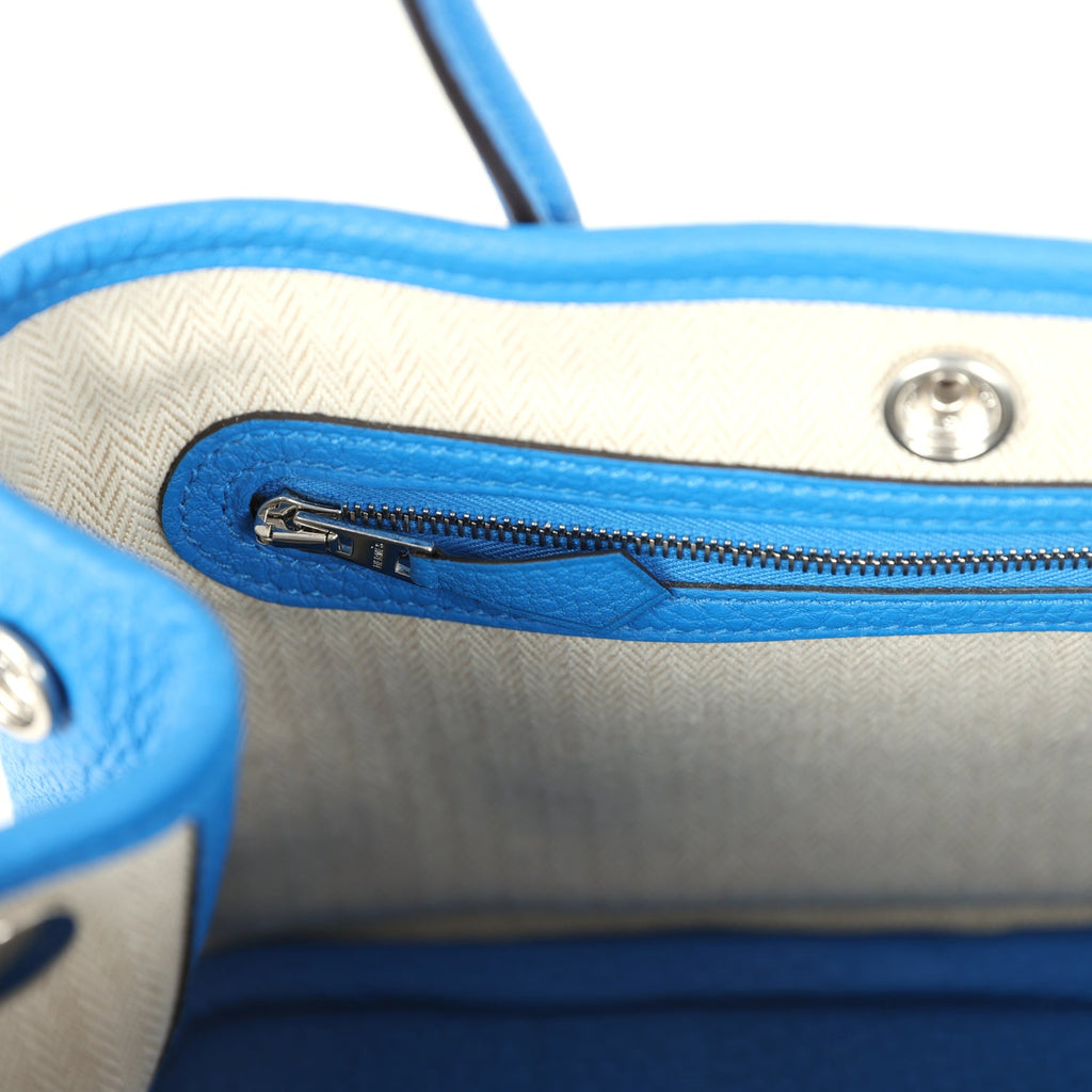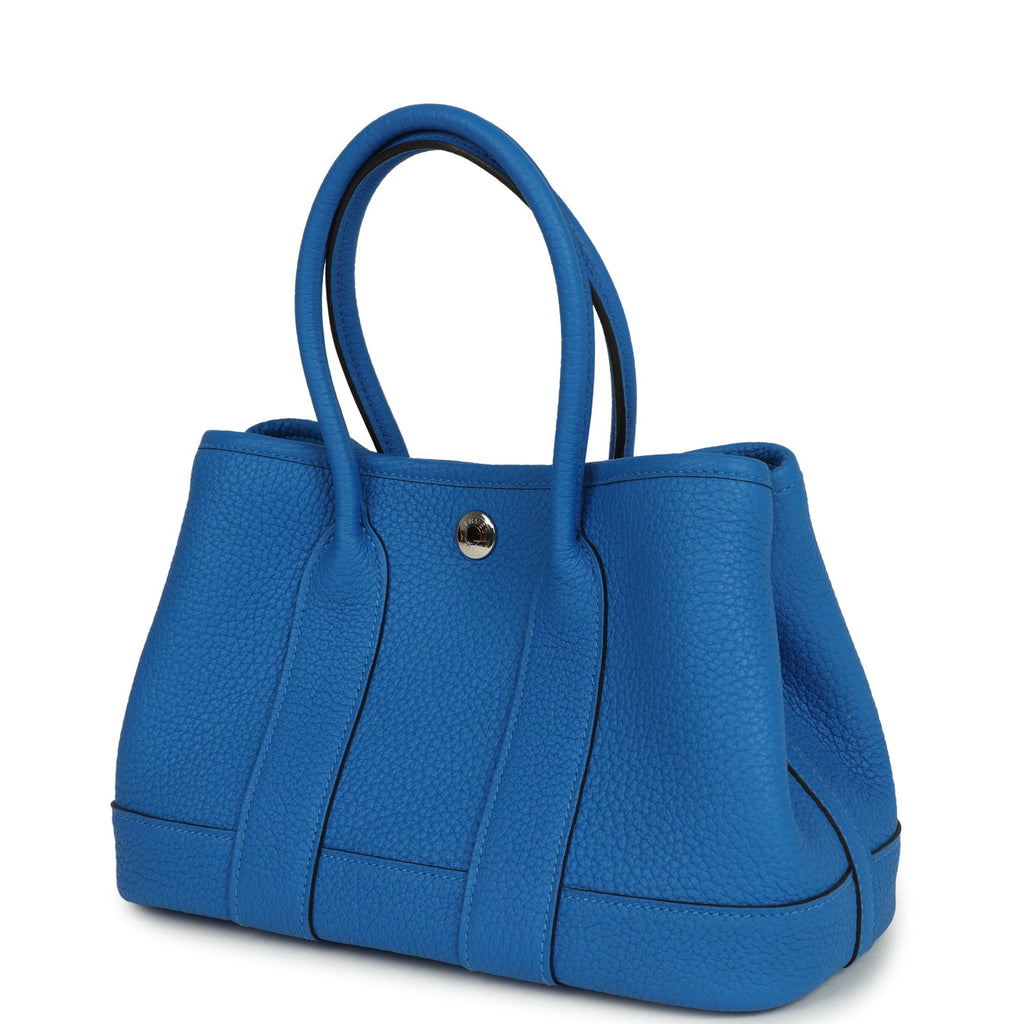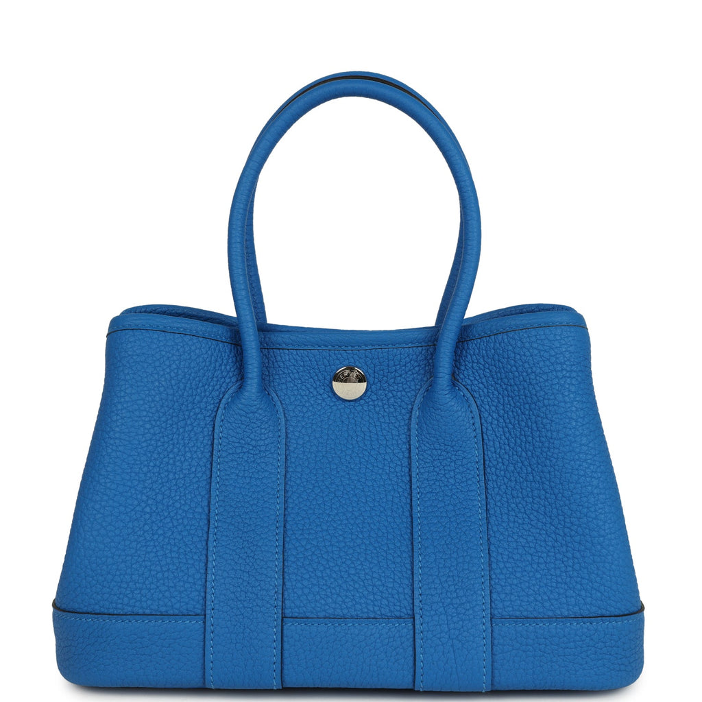 Hermes Garden Party Neo 23 Bleu Hydra Negonda Palladium Hardware Shop for an authentic Hermes Garden Party Neo 23 in Bleu Hydra Negonda leather with palladium hardware in new and never worn condition at Madison Avenue Couture.