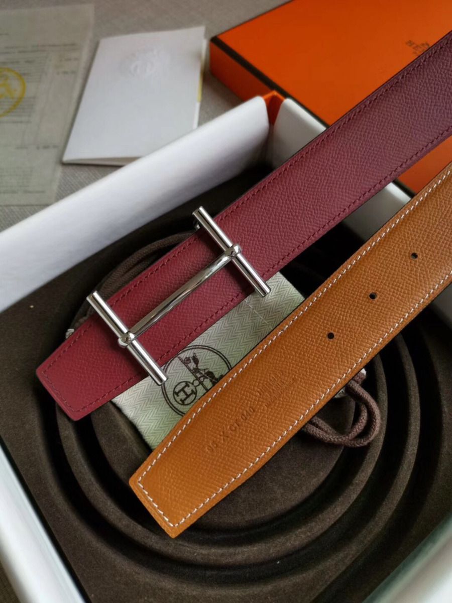 Hermes H d'Ancre Reversible Belt In Gold/Red Epsom Leather