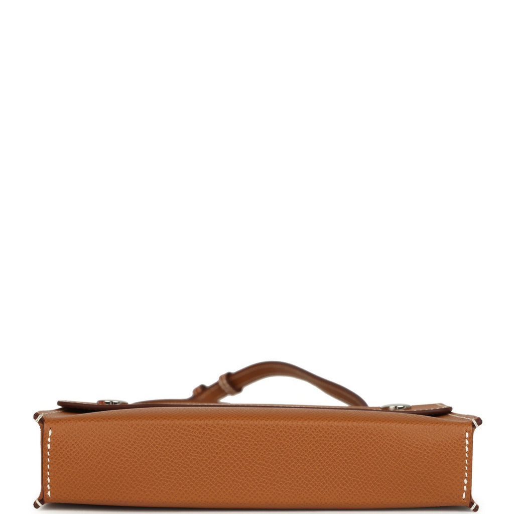 This Hermes Hermesnap Wallet is in Gold epsom leather with palladium hardware, featuring two Clou de Selle snap closures and an adjustable flat leather shoulder/crossbody strap.The interior is lined in Gold epsom leather and has one small slit pocket on front wall of wallet.Collection: W (2024)Origin: FranceCondition: New and never worn Accompanied by: Hermes box, two strap dustbags, ribbonMeasurements: 7.25″ width x 4.5″ width x 1.5″ depth; adjustable strap: 18″-21″ (approx.)