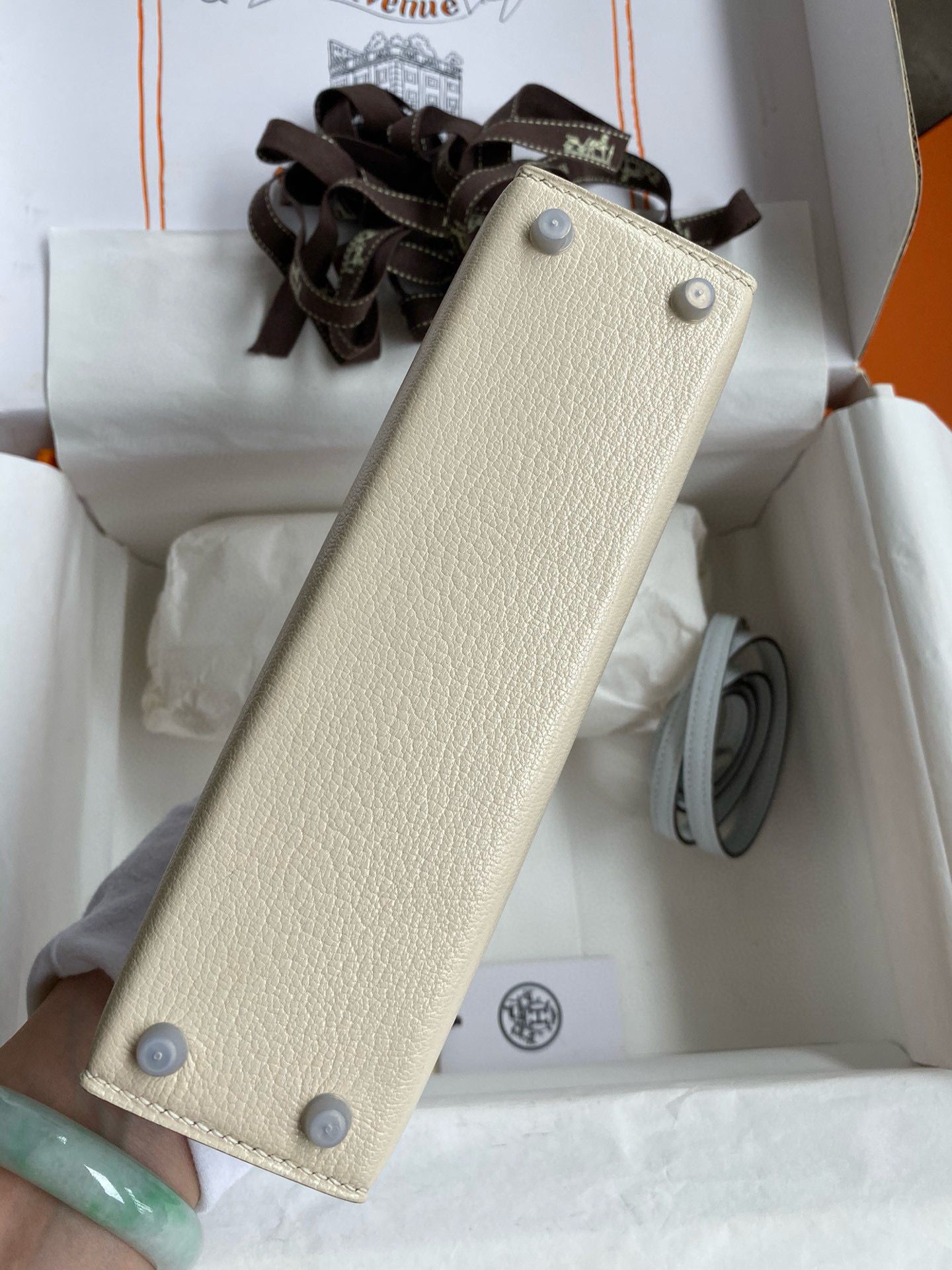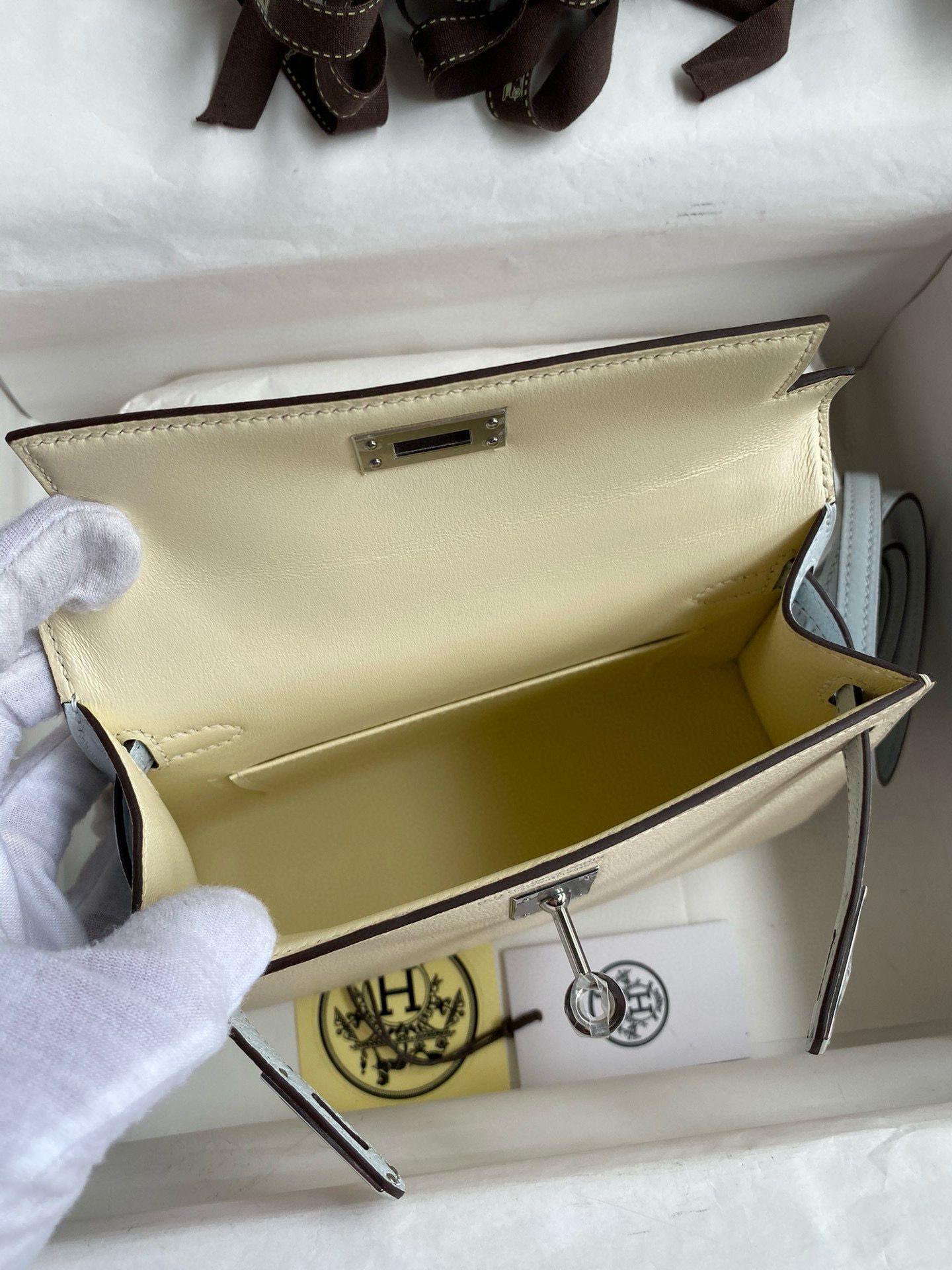 Hermes Kelly Mini II Sellier Bicolor Handmade Bag in Nata and Blue Brume Chevre Mysore Leather