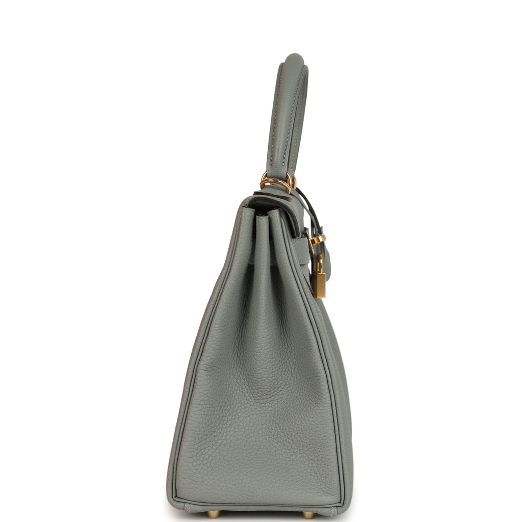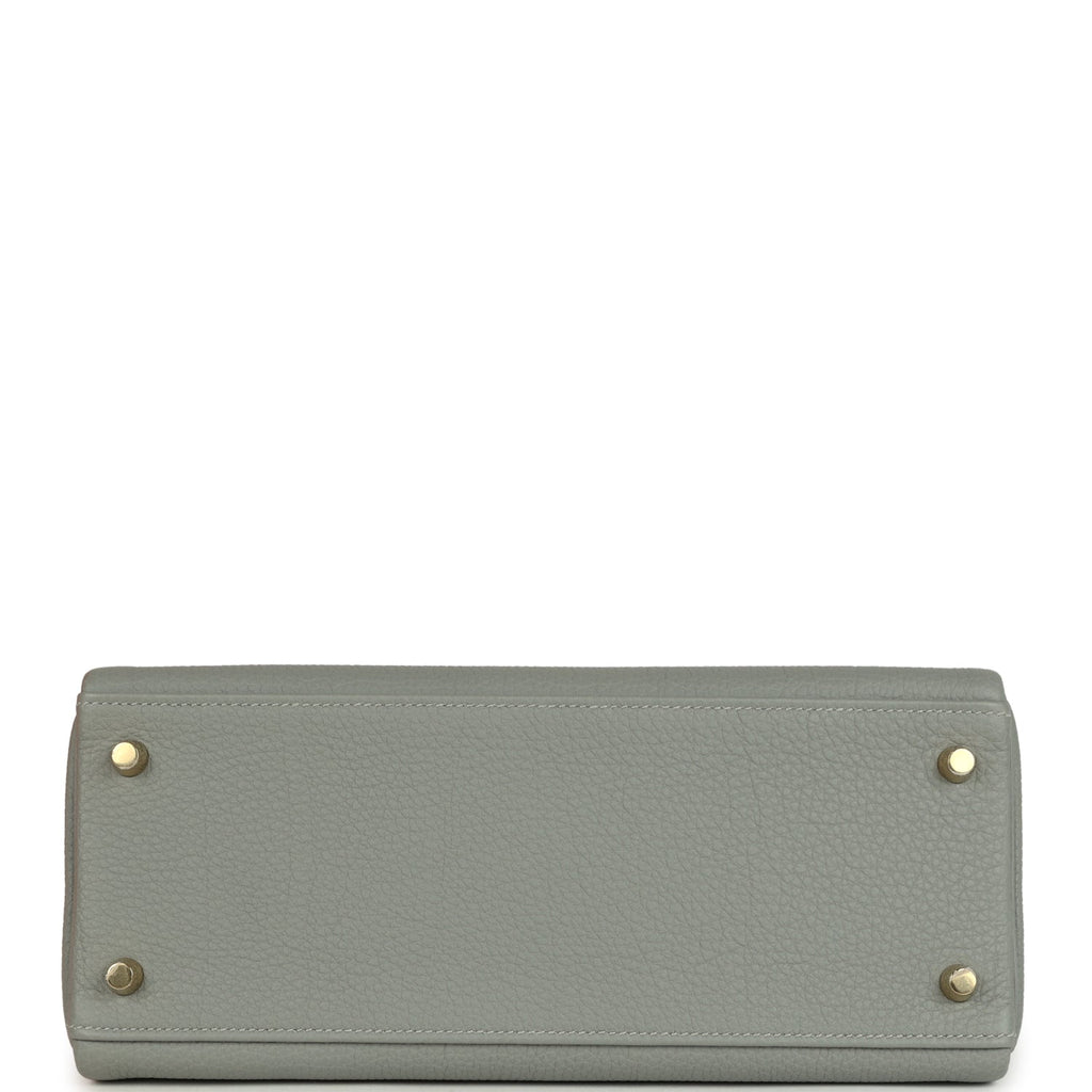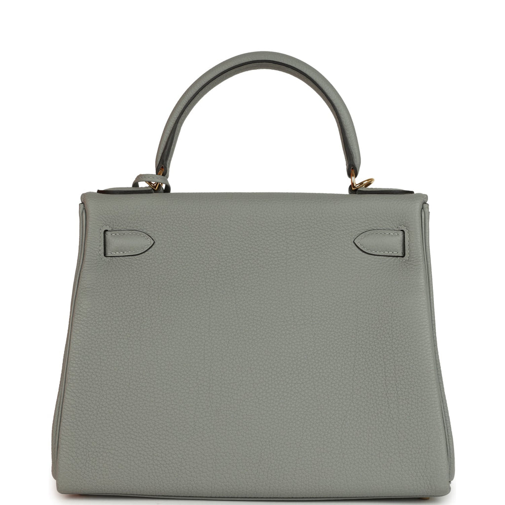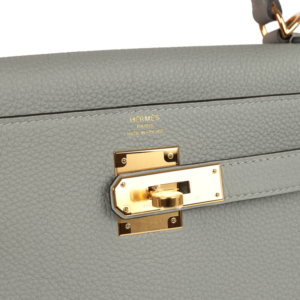 Hermes Kelly Retourne 28 Gris Mouette Togo Gold Hardware Shop for an authentic Hermes Kelly Retourne 28 in Gris Mouette togo leather with gold hardware in new and never worn condition at Madison Avenue Couture.