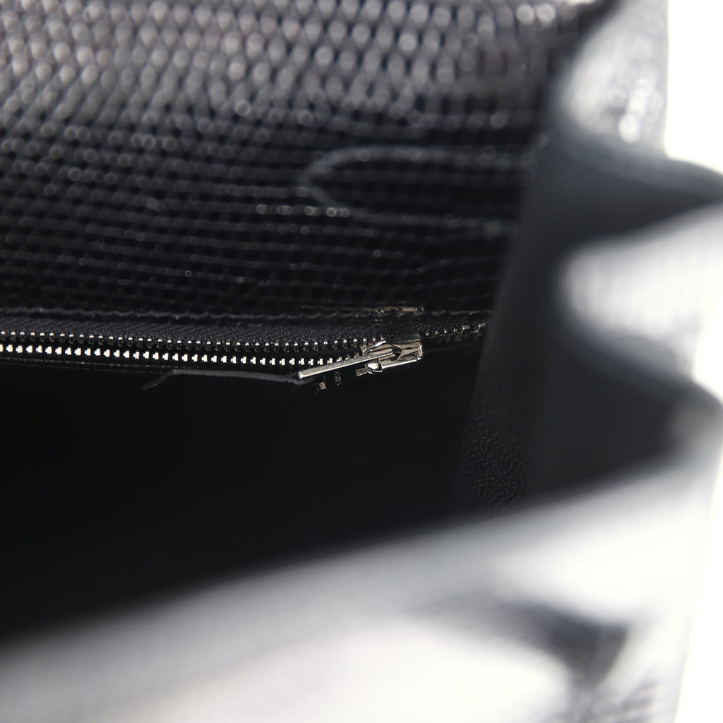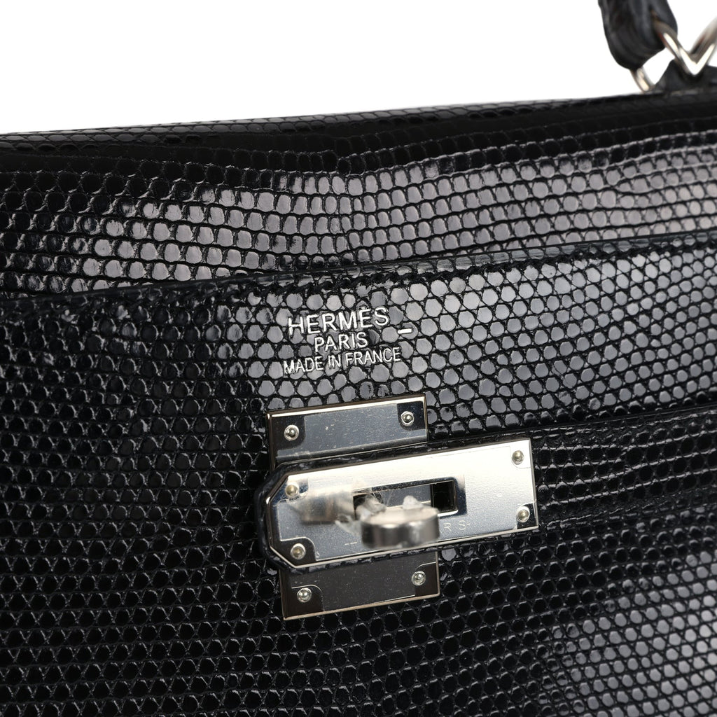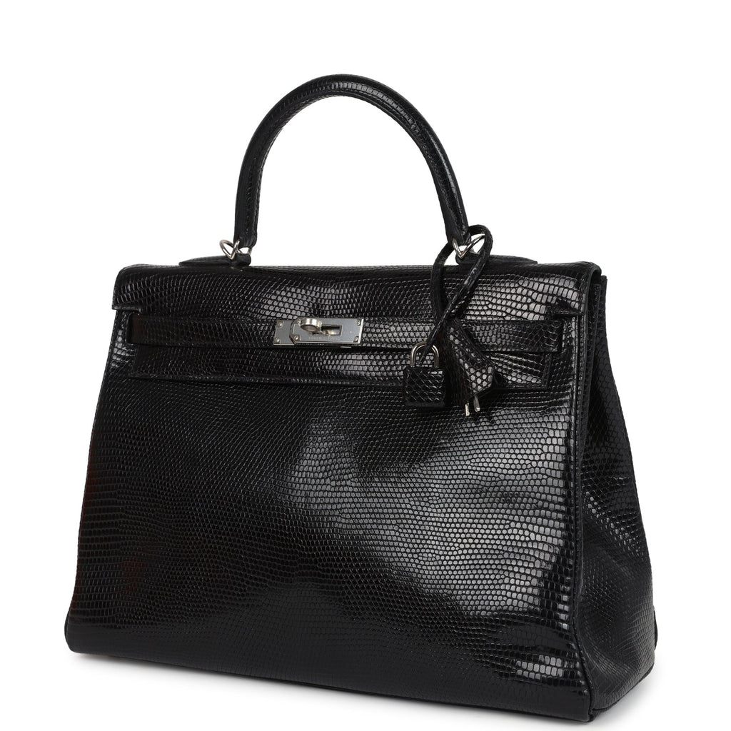 Hermes Kelly Retourne 35 Black Varanus Niloticus Lizard Palladium Hardware Shop for an authentic Hermes Kelly Retourne 35 in Black Varanus Niloticus Lizard with palladium hardware in never worn condition at Madison Avenue Couture.