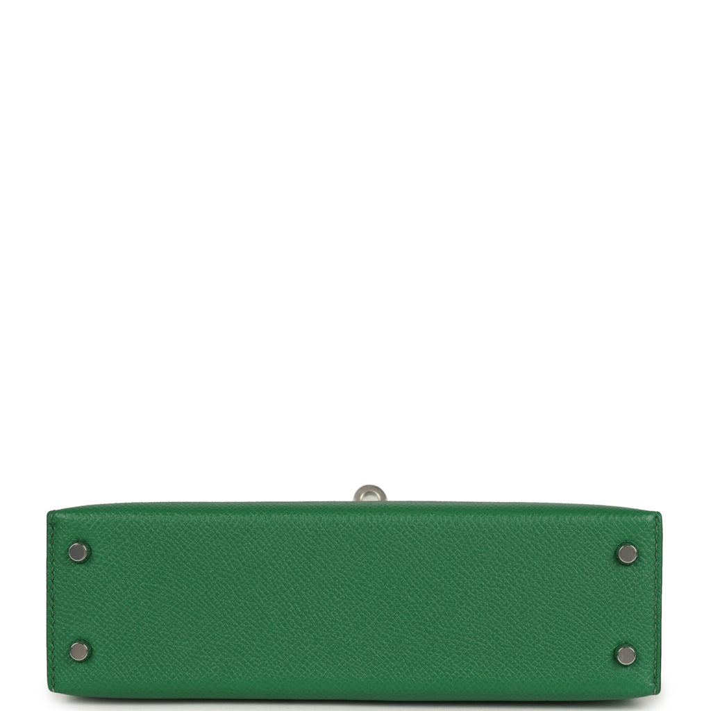 Hermes Kelly Sellier 20 Cactus Verso Epsom Palladium Hardware Shop for an authentic Hermes Kelly Sellier 20 in Cactus verso epsom leather with palladium hardware in never worn condition at Madison Avenue Couture.