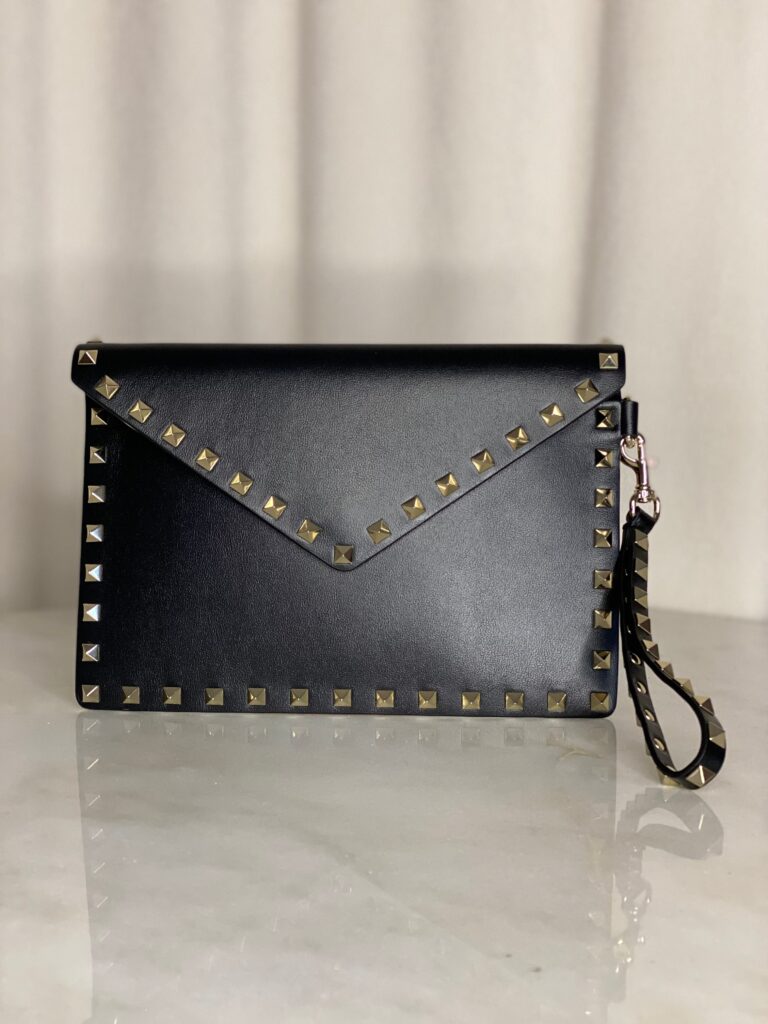 – Leather draw strap closure with rotating clasp