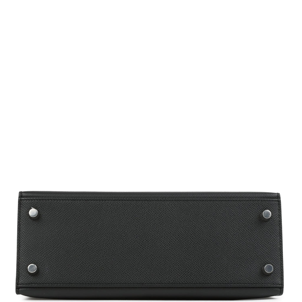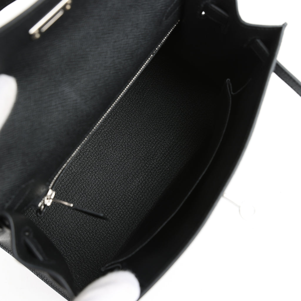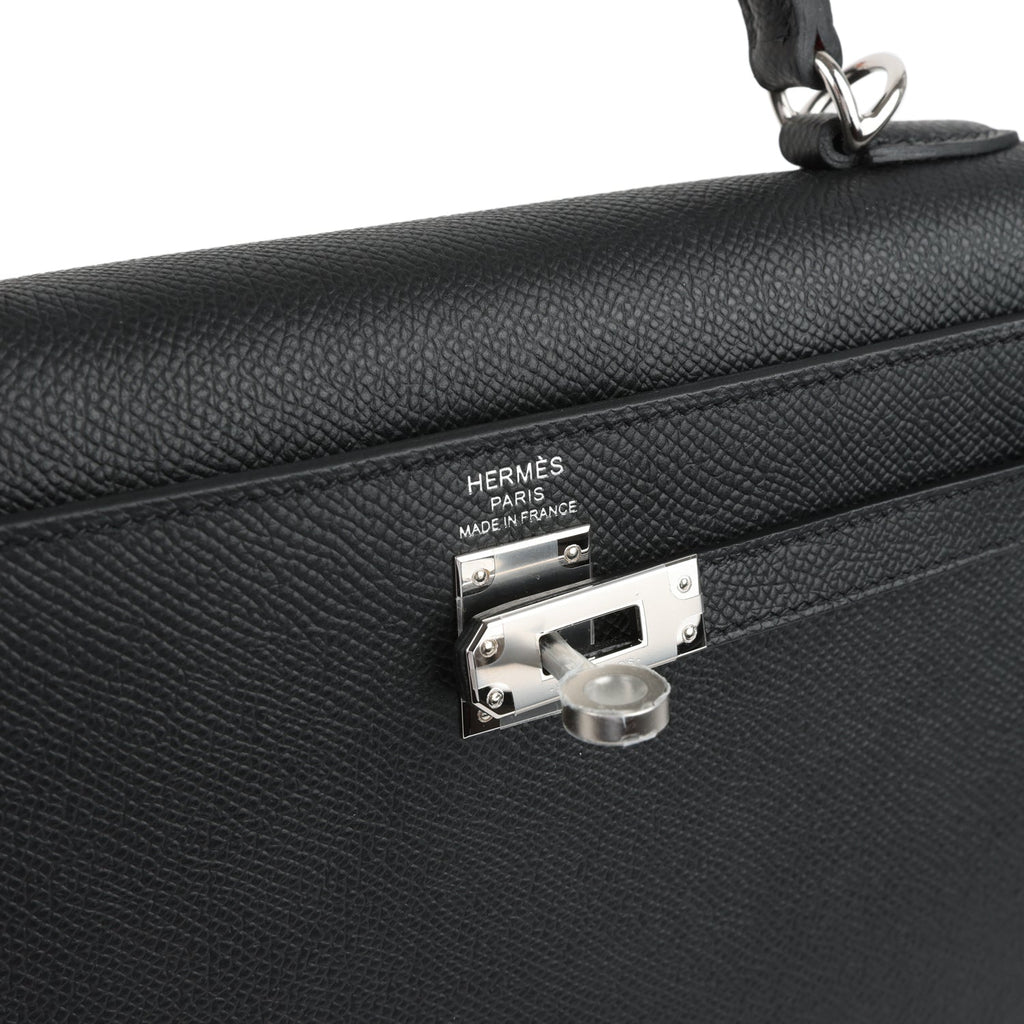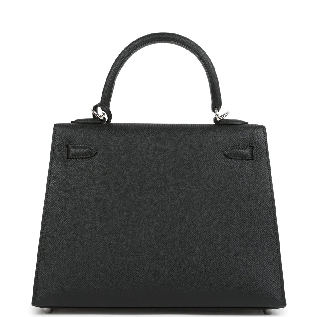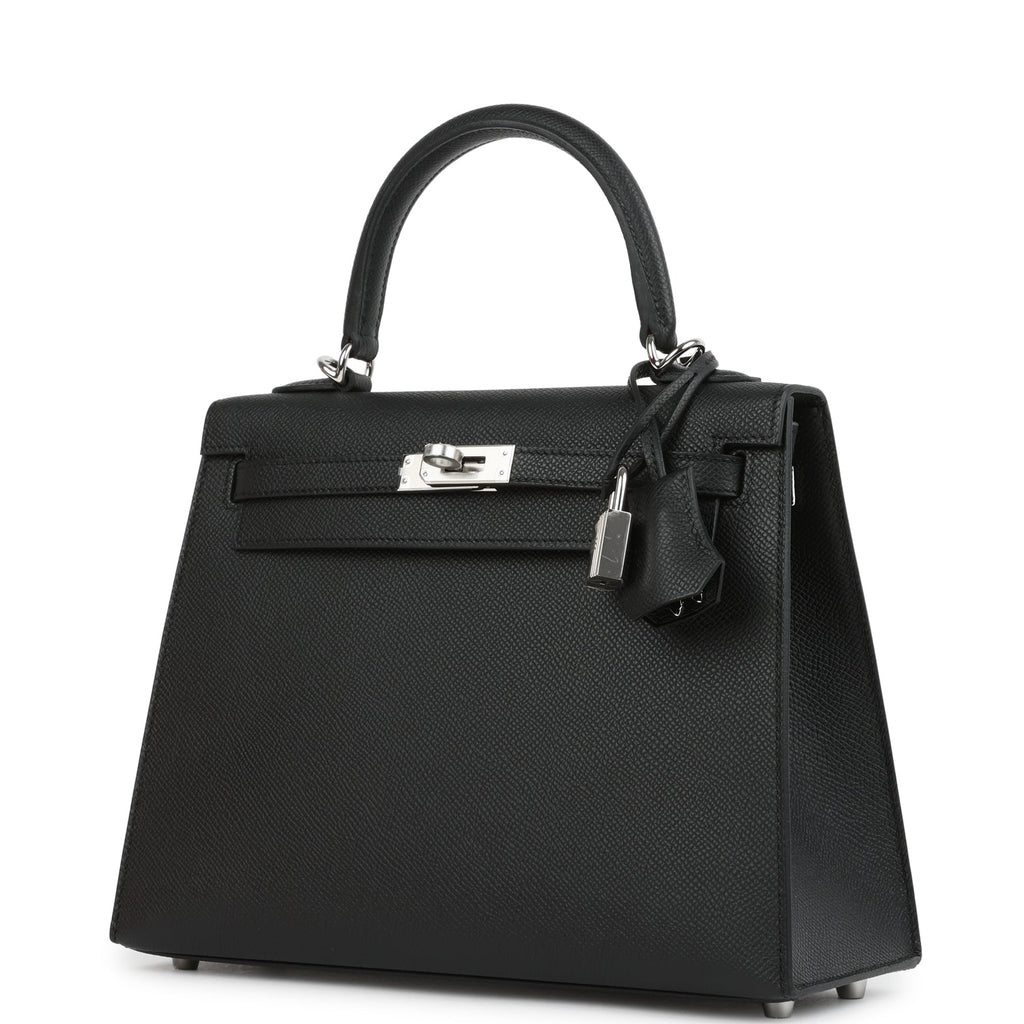 Hermes Kelly Sellier 25 Black Epsom Palladium Hardware Shop for an authentic Hermes Kelly Sellier 25 in Black epsom leather with palladium hardware in new and never worn condition at Madison Avenue Couture.