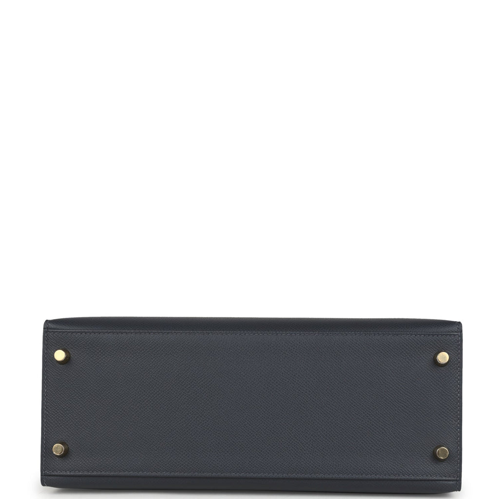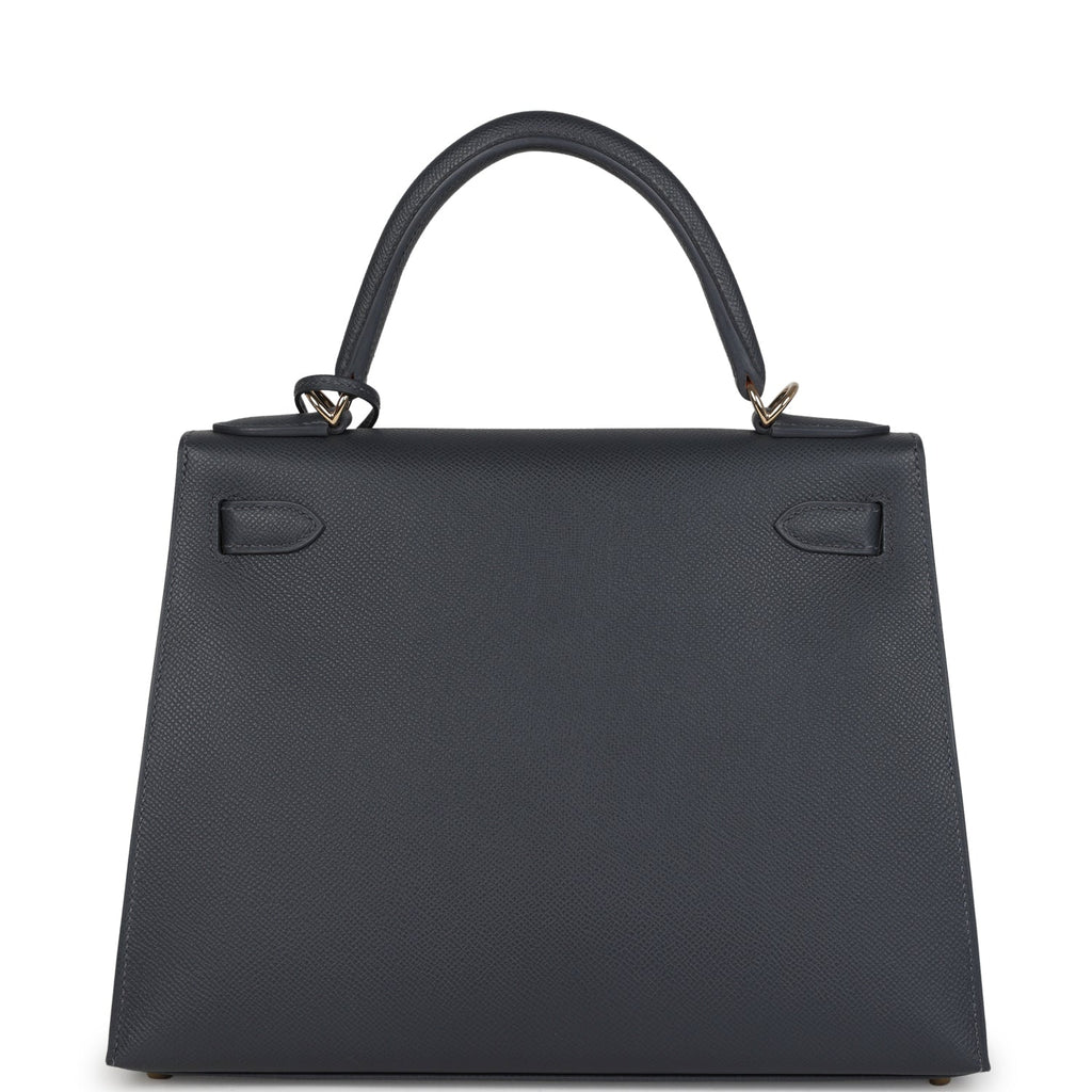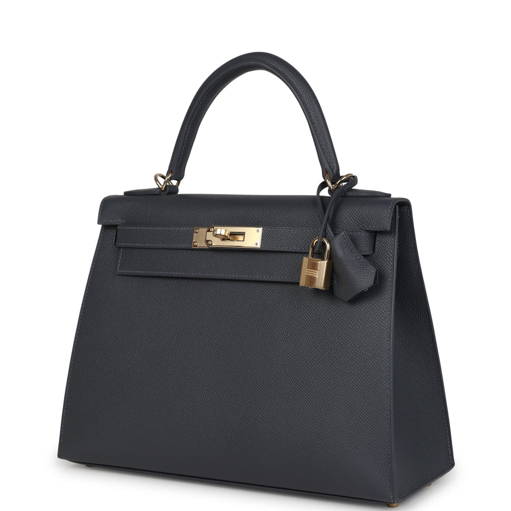 Hermes Kelly Sellier 28 Ardoise Epsom Permabrass Hardware Shop for an authentic Hermes Kelly Sellier 28 in Ardoise epsom leather with permabrass hardware in new and never worn condition at Madison Avenue Couture.