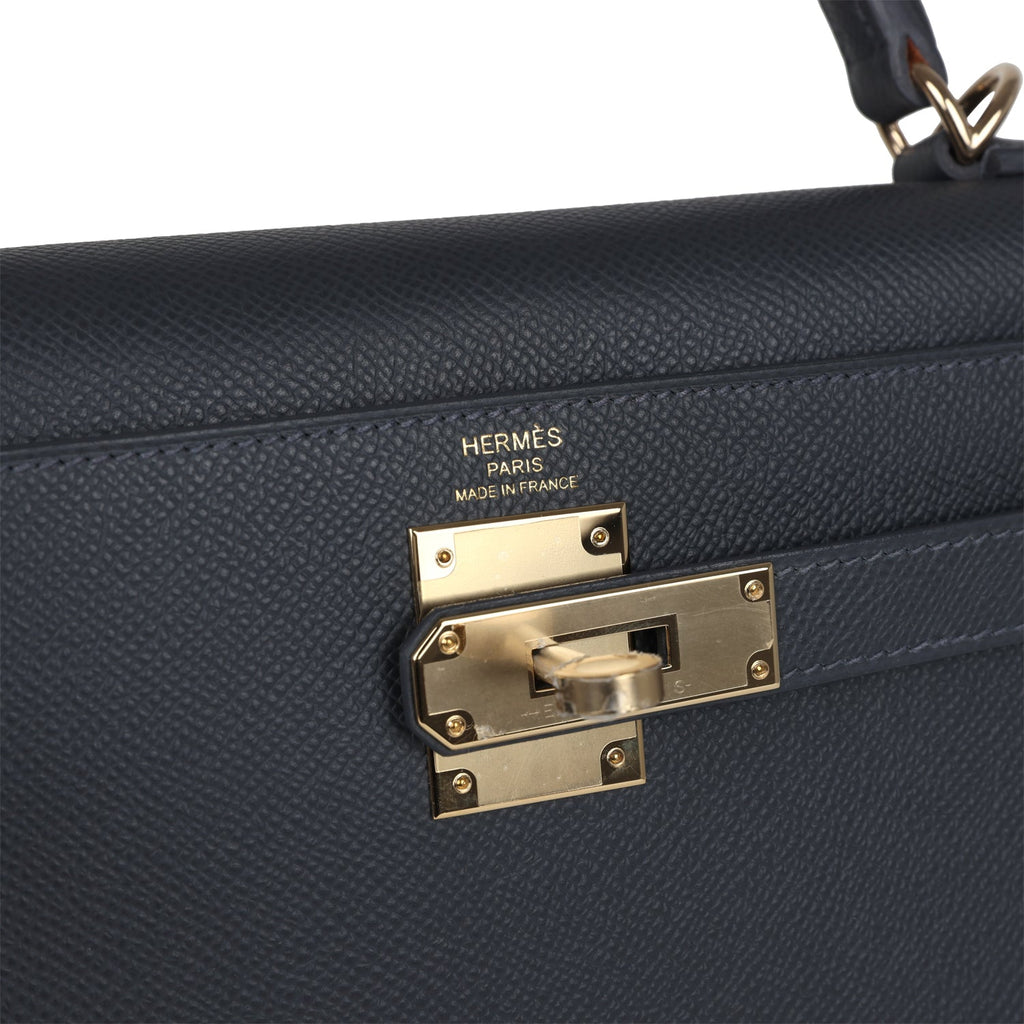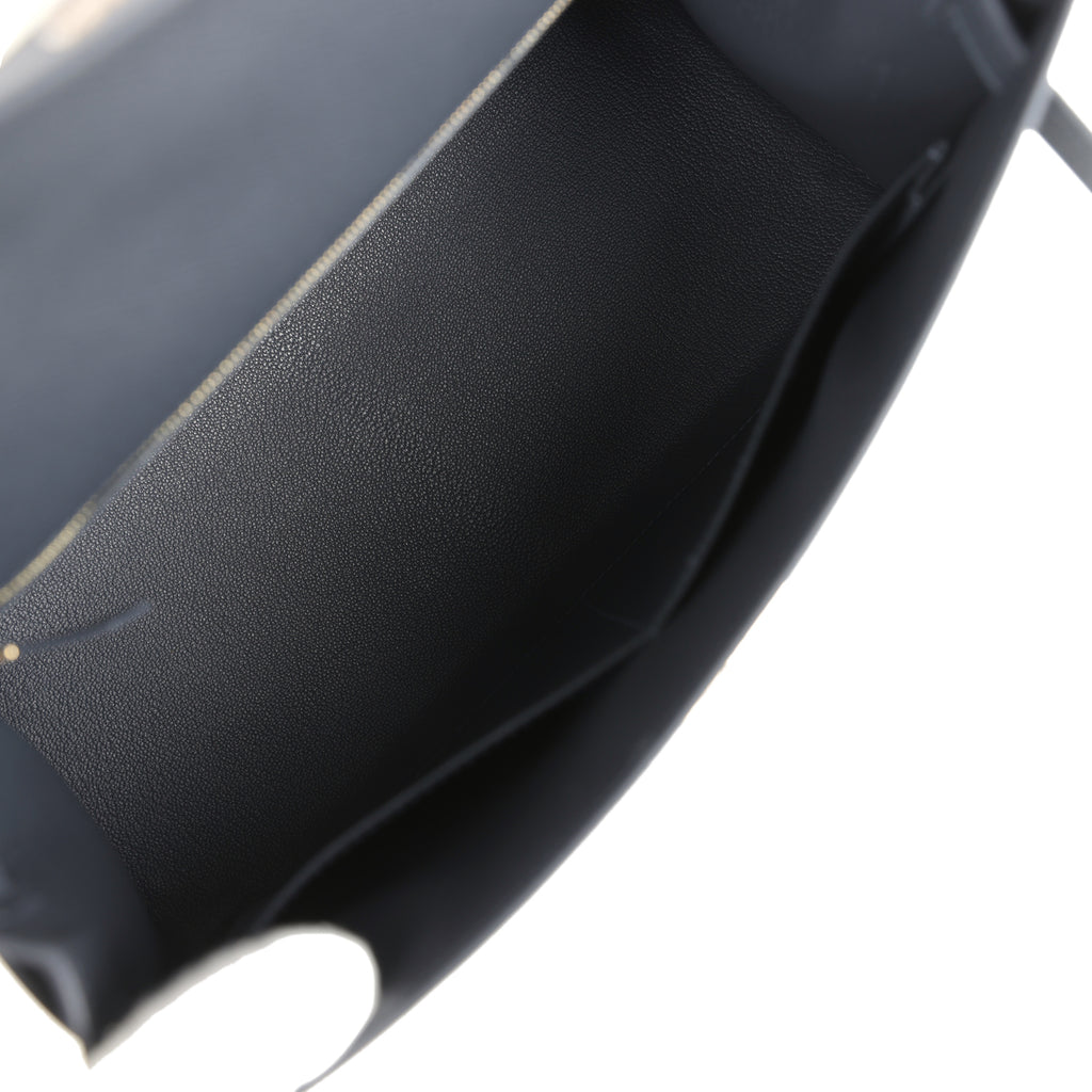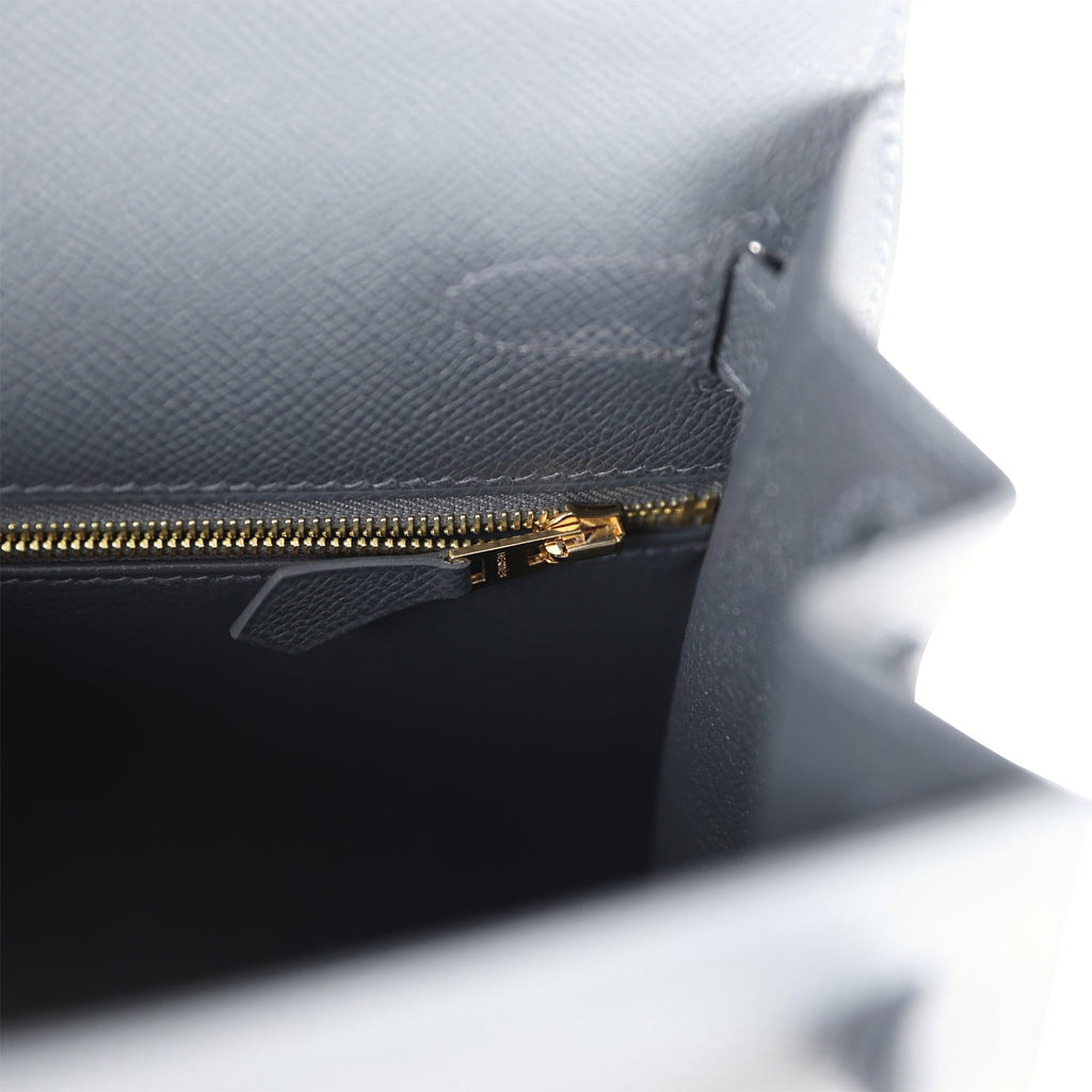 This Kelly, in the Sellier style, is in Ardoise Epsom leather with permabrass hardware, tonal stitching, front flap with two straps, front toggle closure, clochette with lock and two keys, single rolled handle, and a removable shoulder strap.The interior is lined in Ardoise Chevre leather and has one zip pocket with Hermes engraved pull; two pockets on opposite side.Collection: K (2025)Origin: FranceCondition: New and Never worn (plastic on hardware)Accompanied by: Hermes box, Hermes dustbag, felt, lock, two keys, clochette, clochette dustbag, removable strap, strap dustbag, carebookMeasurements: 11.25″ width x 8.25″ height x 4.75″ depth; 3.5″ handle drop (16.5″ shoulder strap drop)